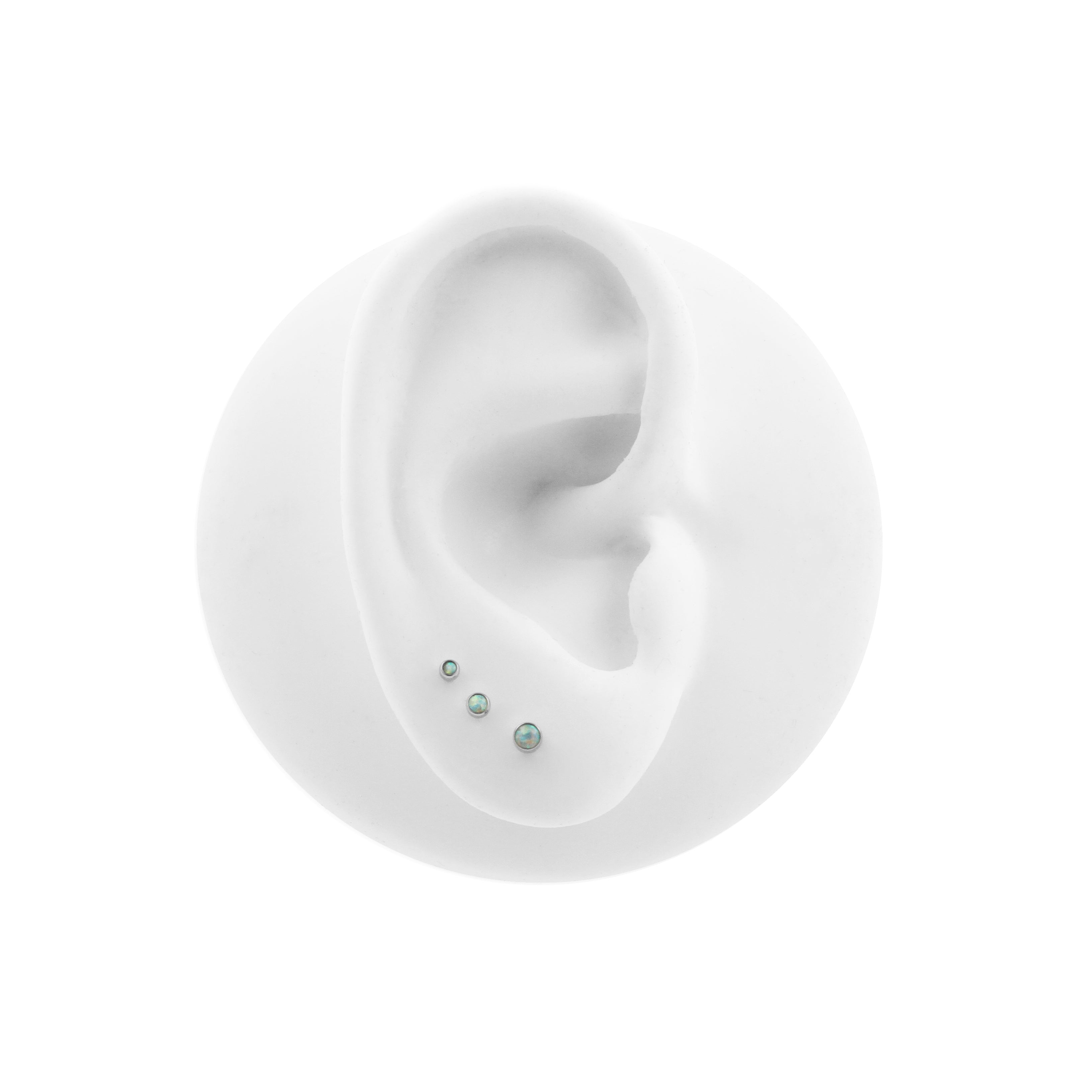 Titanium Opal Disc - Light Green Opal instantly adds a stylish touch to your piercing. This Threadless Top is made of Titanium with a synthetic opal in Light Green Opal. The threadless system allows you to easily combine this top with all our bars, which we call Threadless Base, for a perfect fit and ultimate comfort.