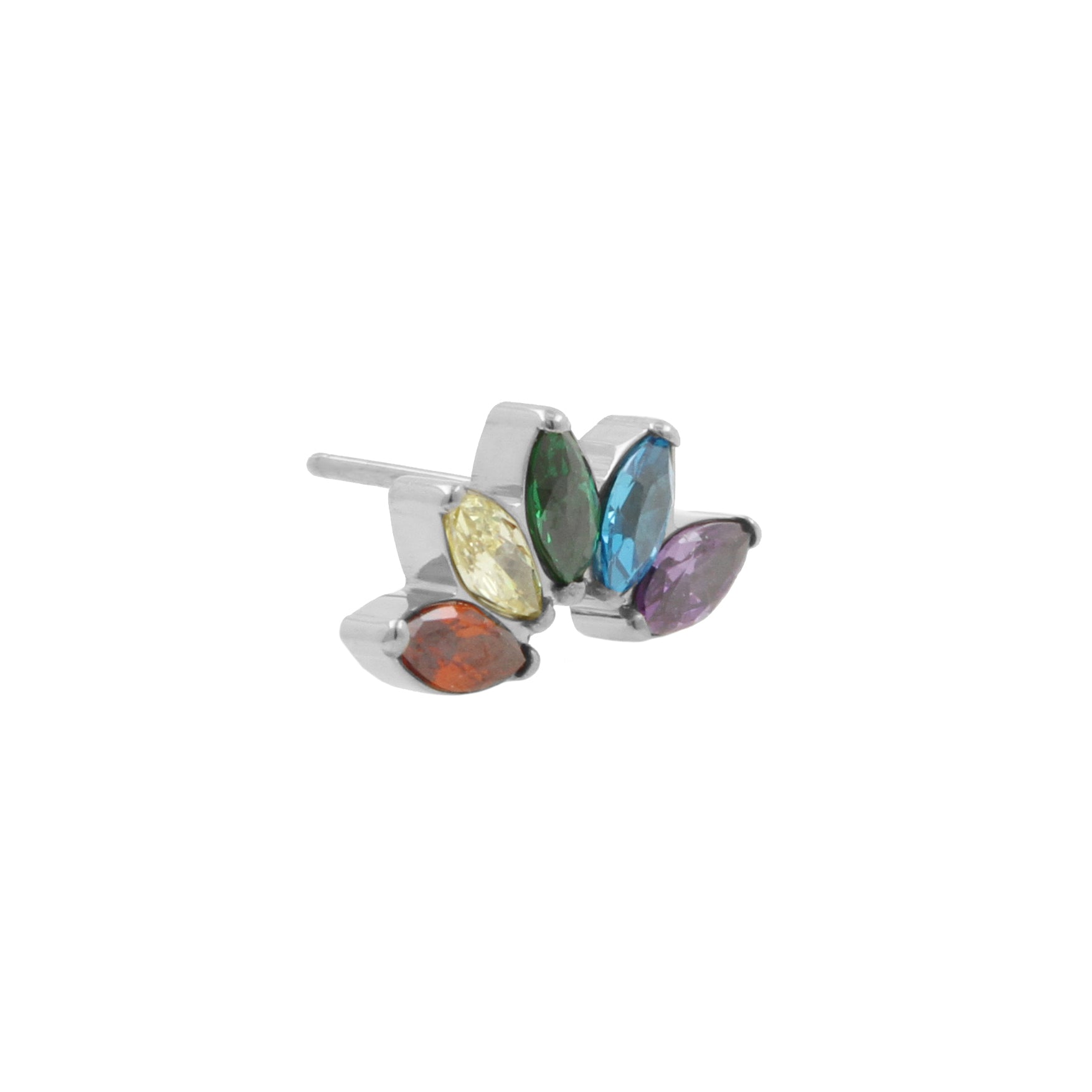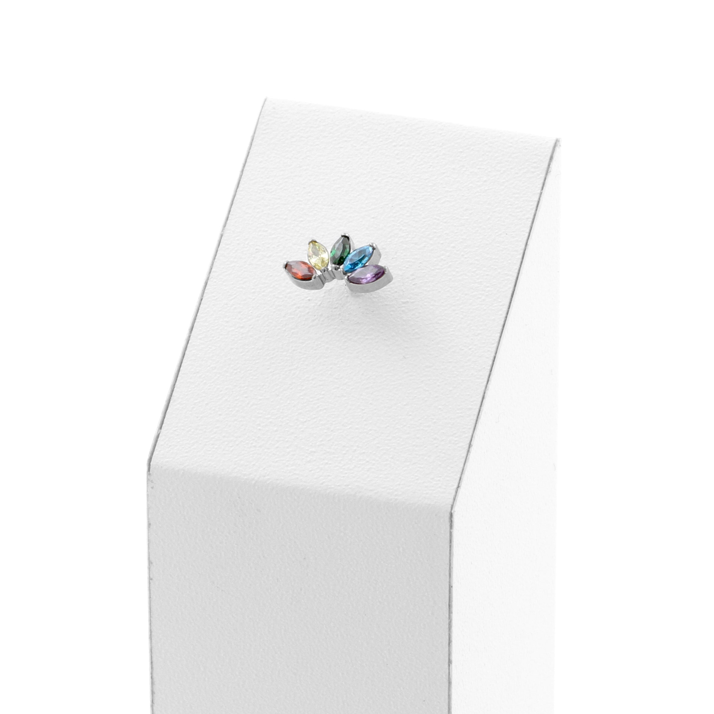 Titanium Rainbow Cluster Marquise Silver instantly adds a stylish touch to your piercing. This Threadless Top is made of Titanium. The threadless system allows you to easily combine this top with all our bars, which we call Threadless Base, for a perfect fit and ultimate comfort.