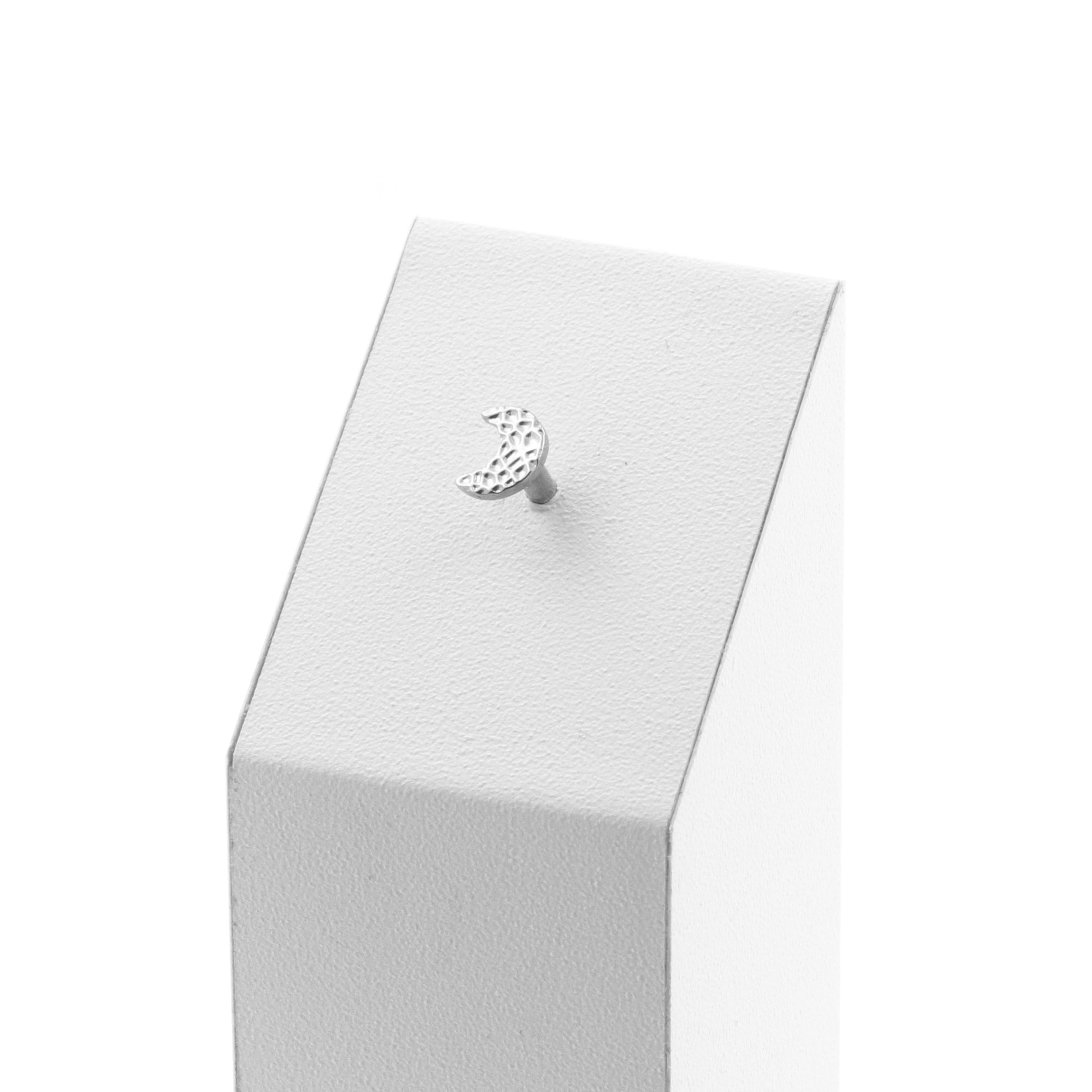 Titanium Textured Moon Silver instantly adds a stylish touch to your piercing. This Threadless Top is made of Titanium. The threadless system allows you to easily combine this top with all our bars, which we call Threadless Base, for a perfect fit and ultimate comfort.