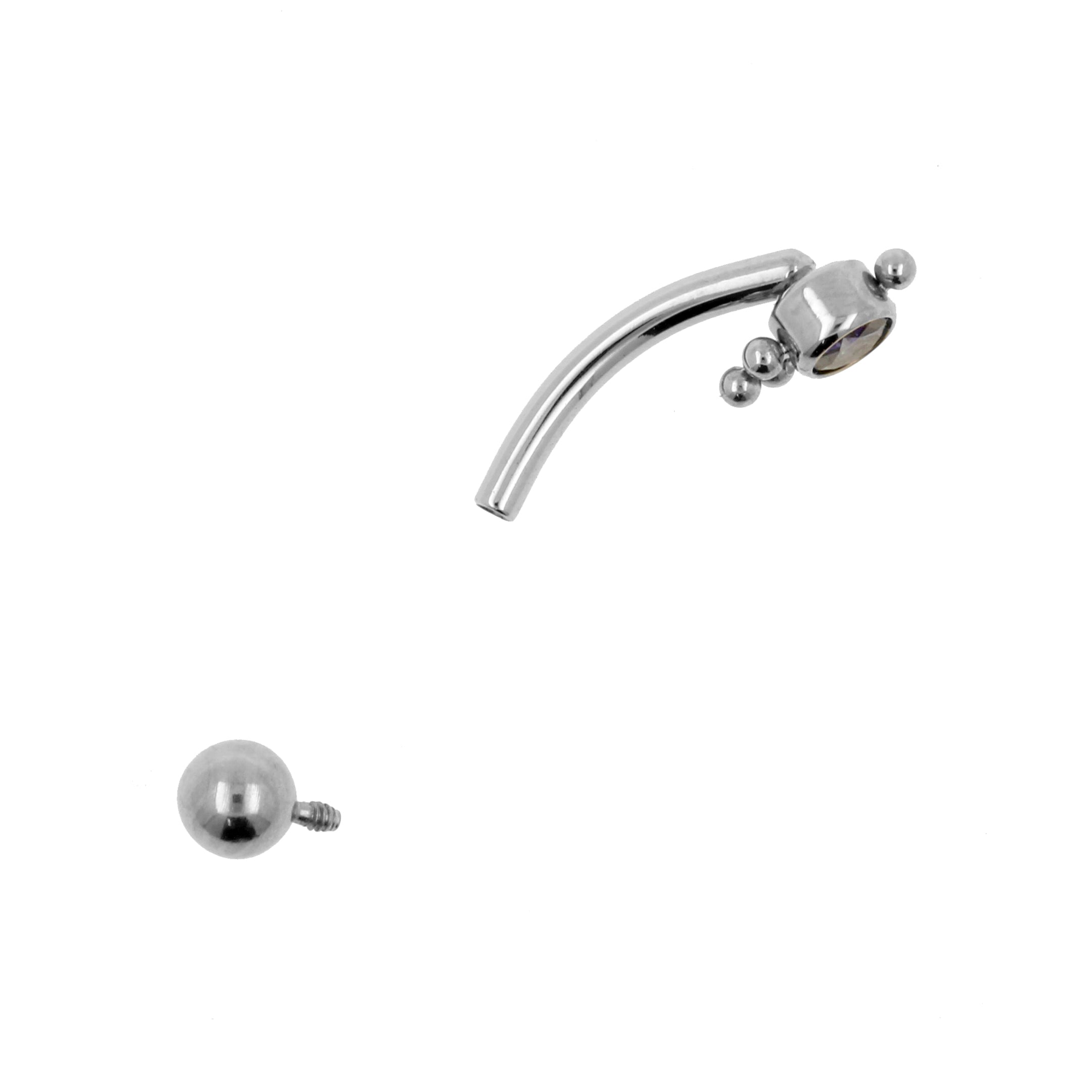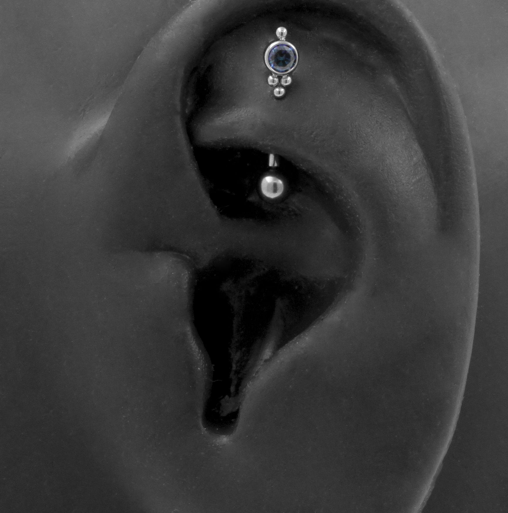 Stand out in the crowd with our Titanium Cluster piercing jewelry! This Titanium Cluster Rook Piercing is perfect for rook piercings and eyebrow piercings. Each cluster is set with genuine zirconia. Made of high quality titanium and suitable for 1,2 mm internally threaded piercing jewelry. Please note that due to the unique shape of the attachment, changing jewelry might be a bit more challenging. But practice makes perfect and it will all be more than worth it in the end, because our Cluster Jewelry will turn your piercings into real eyecatchers! (Extra info: the thread of the accessory measures 0,8 mm in thickness and is compatible with other 1,2 mm internally threaded piercing jewelry from our shop.)