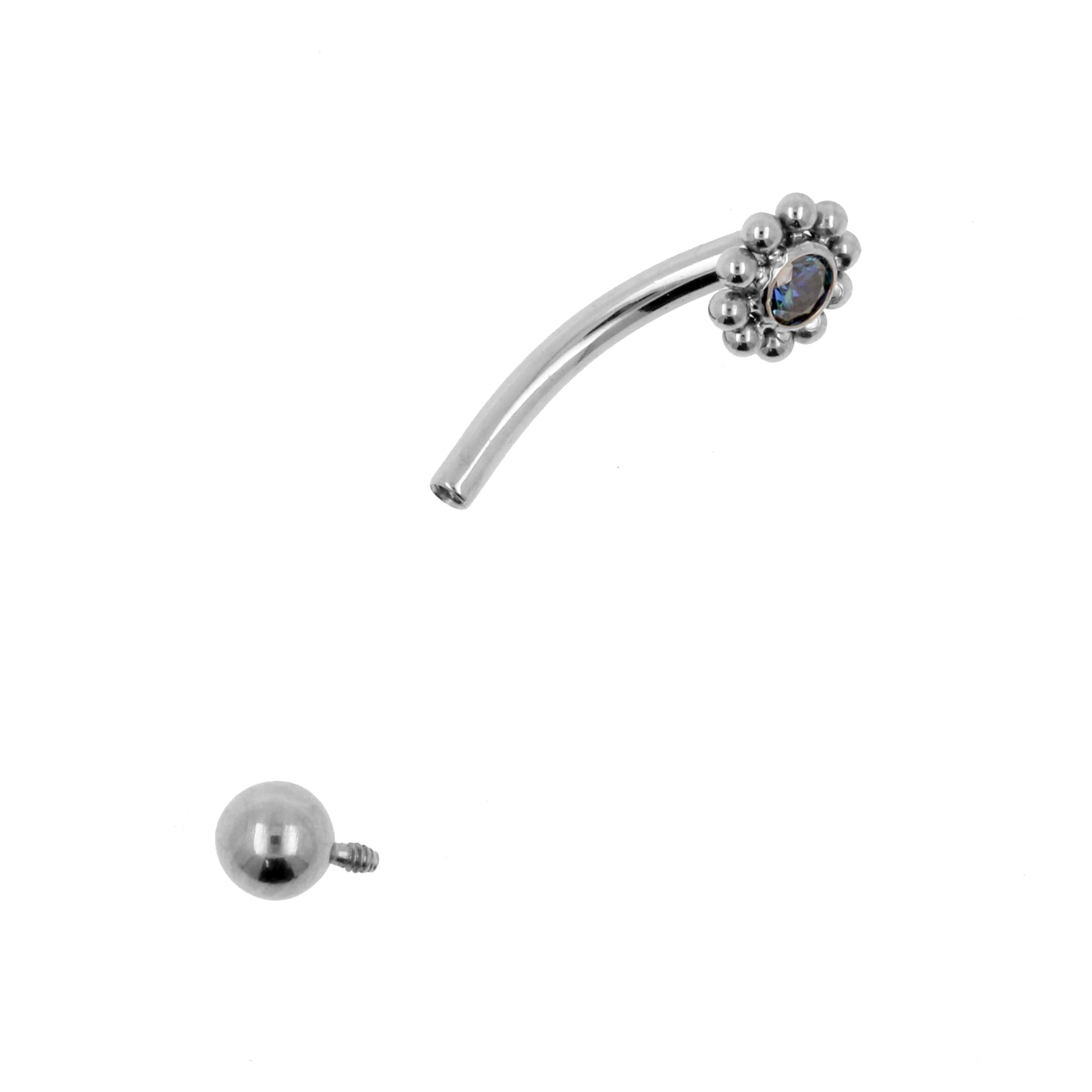 Stand out in the crowd with our Titanium Cluster piercing jewelry! This Titanium Cluster Rook Piercing is perfect for rook piercings and eyebrow piercings. Each cluster is set with genuine zirconia. Made of high quality titanium and suitable for 1,2 mm internally threaded piercing jewelry. Please note that due to the unique shape of the attachment, changing jewelry might be a bit more challenging. But practice makes perfect and it will all be more than worth it in the end, because our Cluster Jewelry will turn your piercings into real eyecatchers! (Extra info: the thread of the accessory measures 0,8 mm in thickness and is compatible with other 1,2 mm internally threaded piercing jewelry from our shop.)