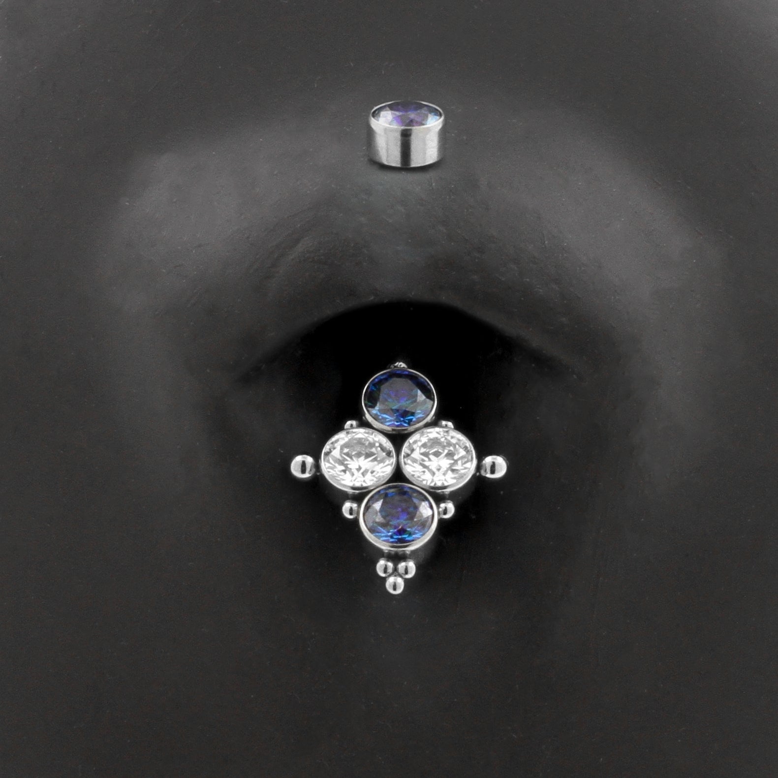 Titanium Zirconia Cluster Belly Ring Royal Blue / Clear