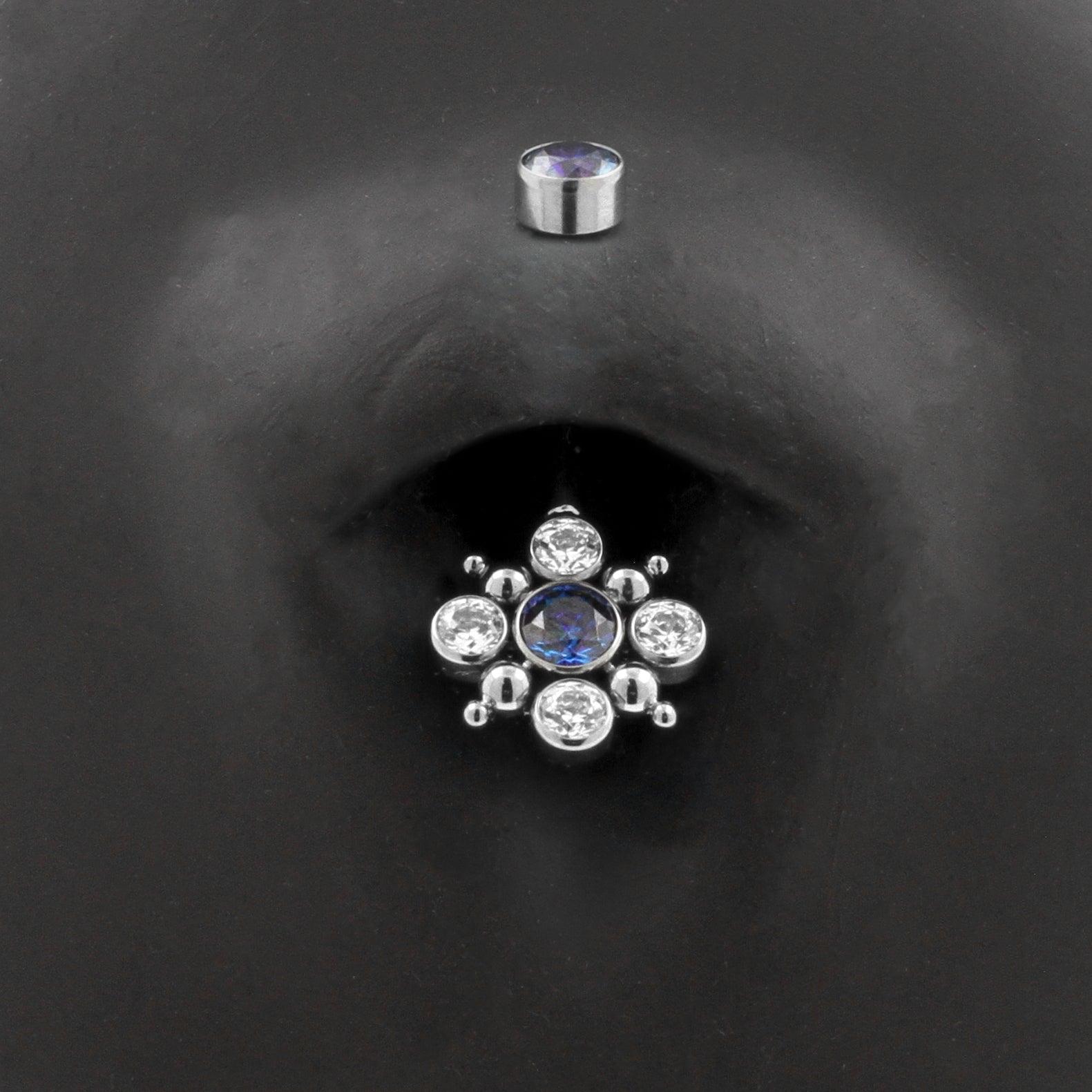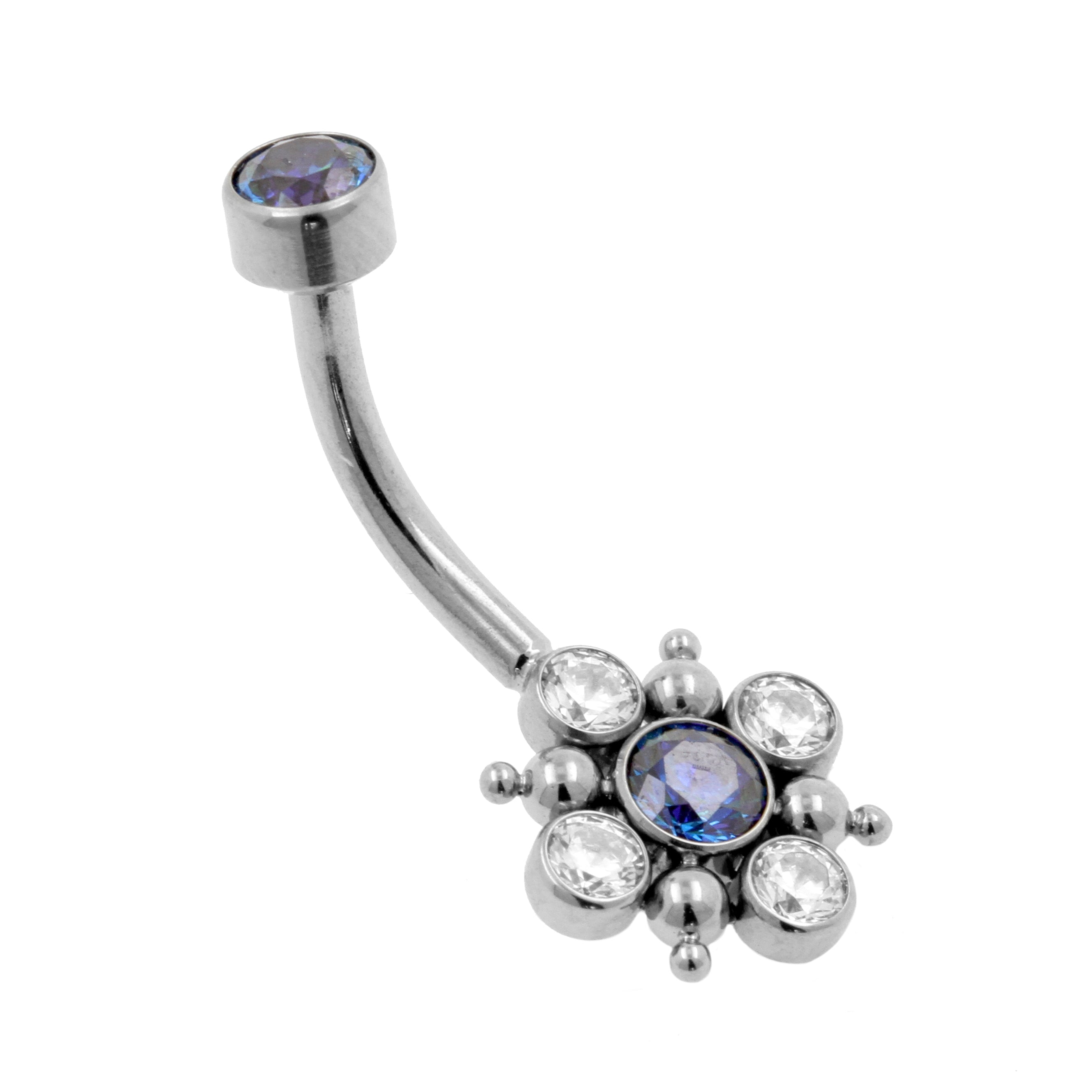 Titanium Zirconia Cluster Belly Ring Royal Blue / Clear