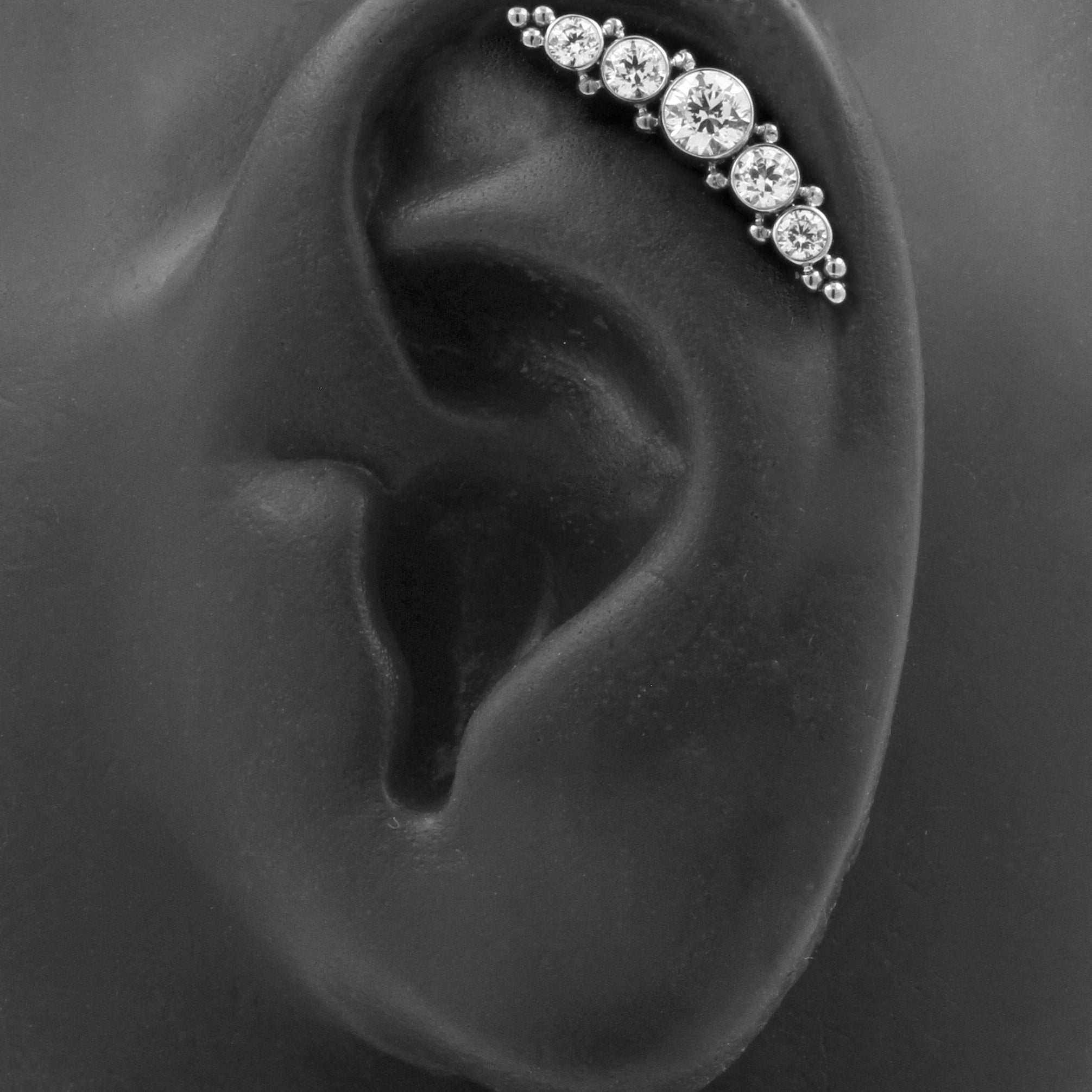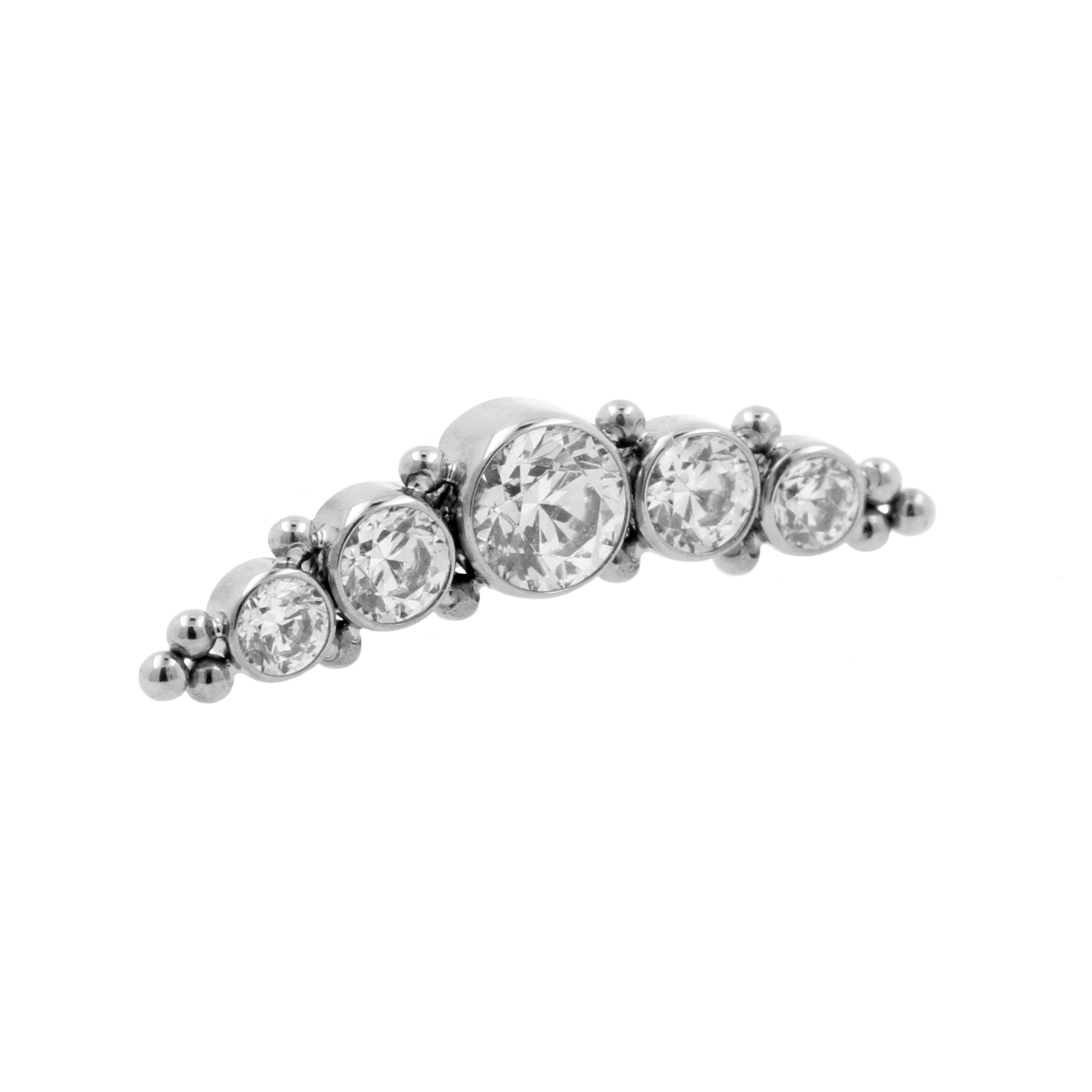 Stand out in the crowd with our Titanium Zirconia Cluster piercing jewelry! These clusters are perfect for all kinds of piercings. Each cluster is set with beautiful zirconias and made of high quality titanium. Suitable for 1,2 mm internally threaded piercing jewelry. (Extra info: the thread of the accessory itself measures 0,8 mm in thickness and is suitable for 1,2 mm All Over Piercings internally threaded piercing jewelry). You will receive the cluster accessory only upon ordering, without stud or post. Please note that due to the unique shape of the attachment, changing jewelry might be a bit more challenging. But practice makes perfect and it will all be more than worth it in the end, because our Zirconia Clusters will turn your piercings into real eyecatchers!