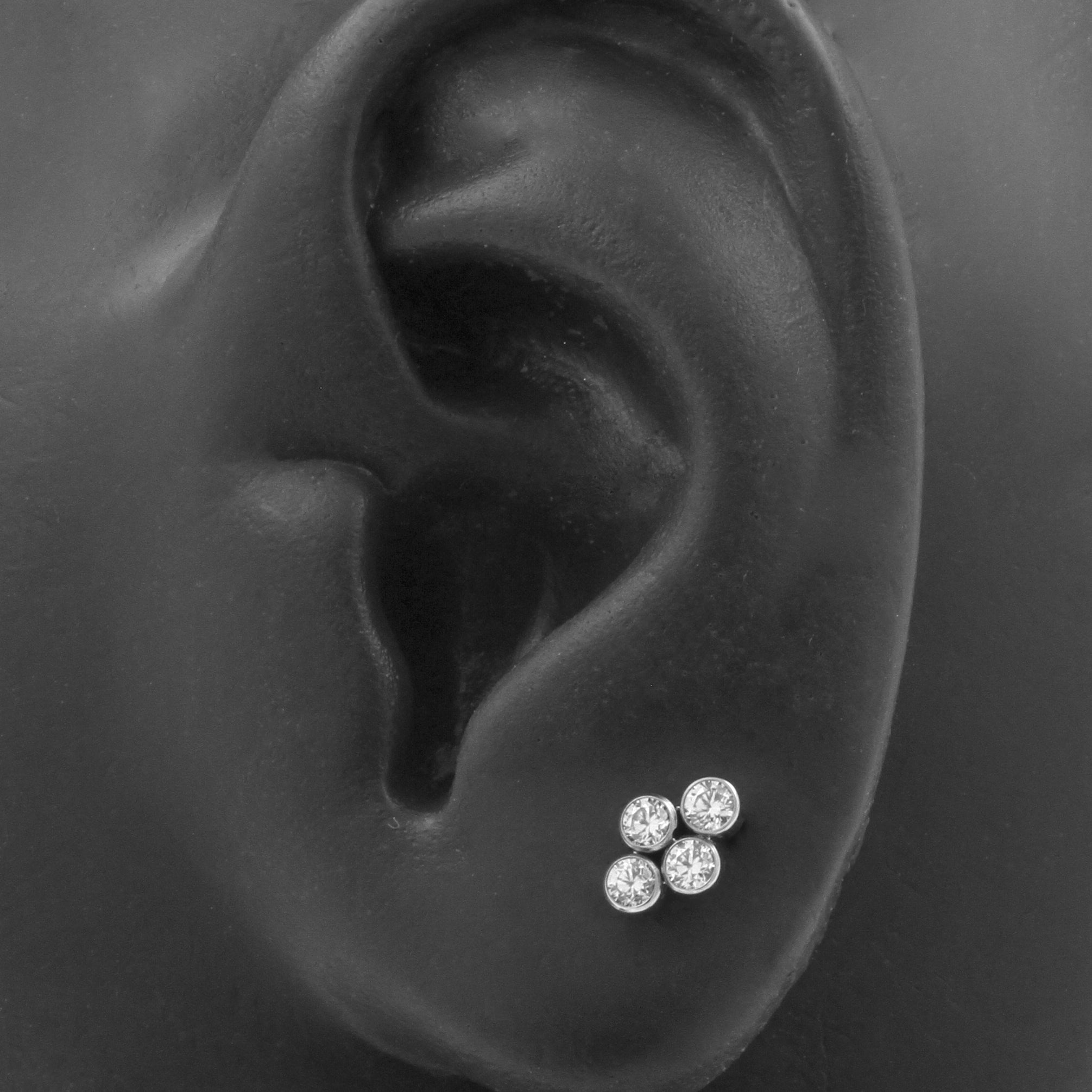Stand out in the crowd with our Titanium Zirconia Cluster piercing jewelry! These clusters are perfect for all kinds of piercings. Each cluster is set with beautiful zirconias and made of high quality titanium. Suitable for 1,2 mm internally threaded piercing jewelry. (Extra info: the thread of the accessory itself measures 0,8 mm in thickness and is suitable for 1,2 mm All Over Piercings internally threaded piercing jewelry). You will receive the cluster accessory only upon ordering, without stud or post. Please note that due to the unique shape of the attachment, changing jewelry might be a bit more challenging. But practice makes perfect and it will all be more than worth it in the end, because our Zirconia Clusters will turn your piercings into real eyecatchers!