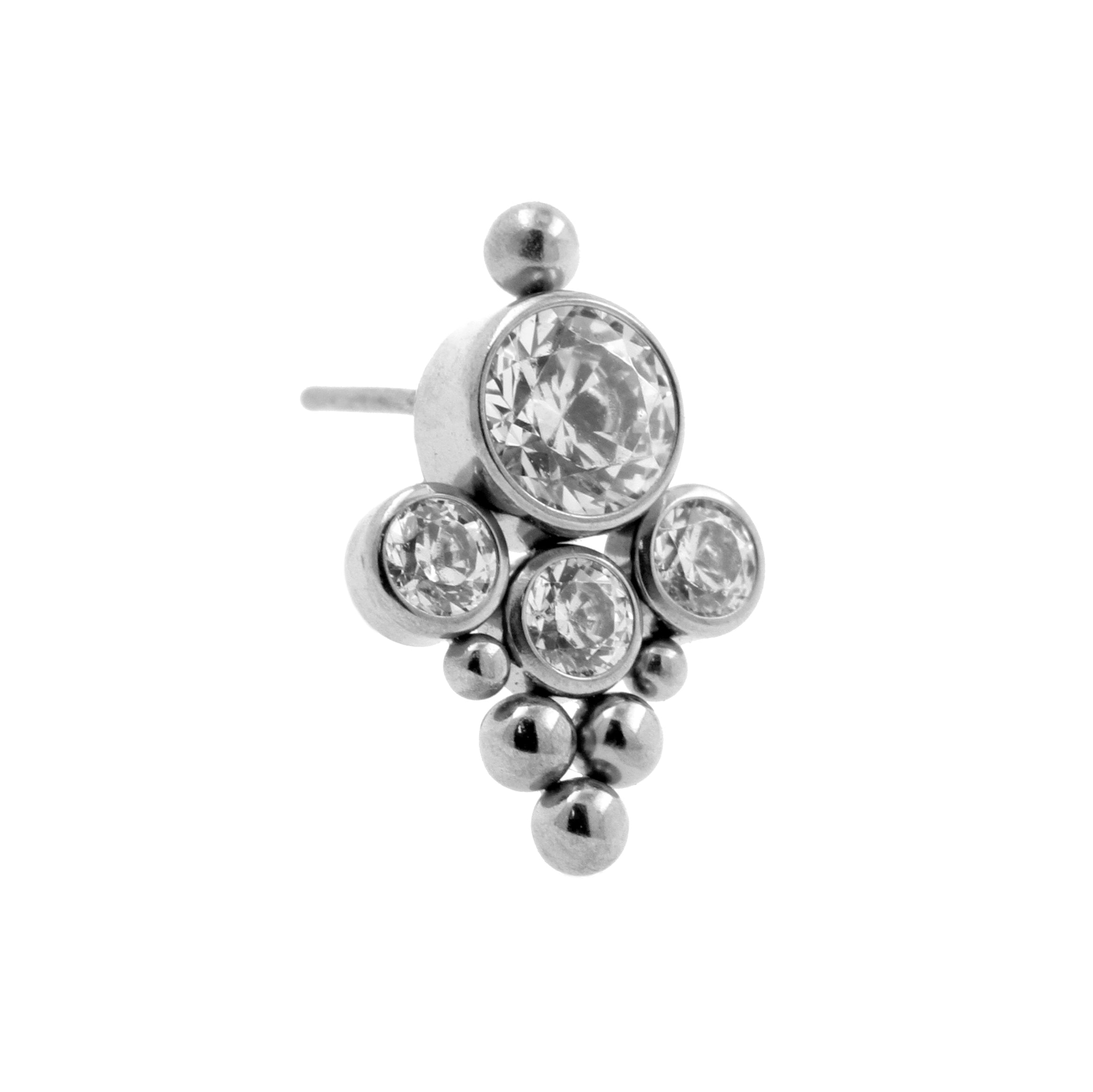 Titanium Zirconia Cluster - Silver instantly adds a stylish touch to your piercing. This Threadless Top is made of Titanium. The threadless system allows you to easily combine this top with all our bars, which we call Threadless Base, for a perfect fit and ultimate comfort.
