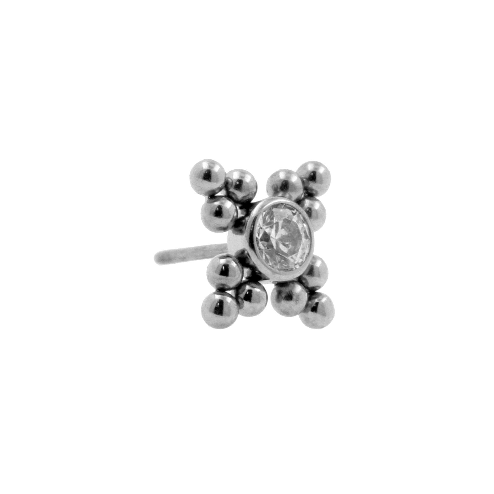 Titanium Zirconia Cluster - Silver instantly adds a stylish touch to your piercing. This Threadless Top is made of Titanium. The threadless system allows you to easily combine this top with all our bars, which we call Threadless Base, for a perfect fit and ultimate comfort.