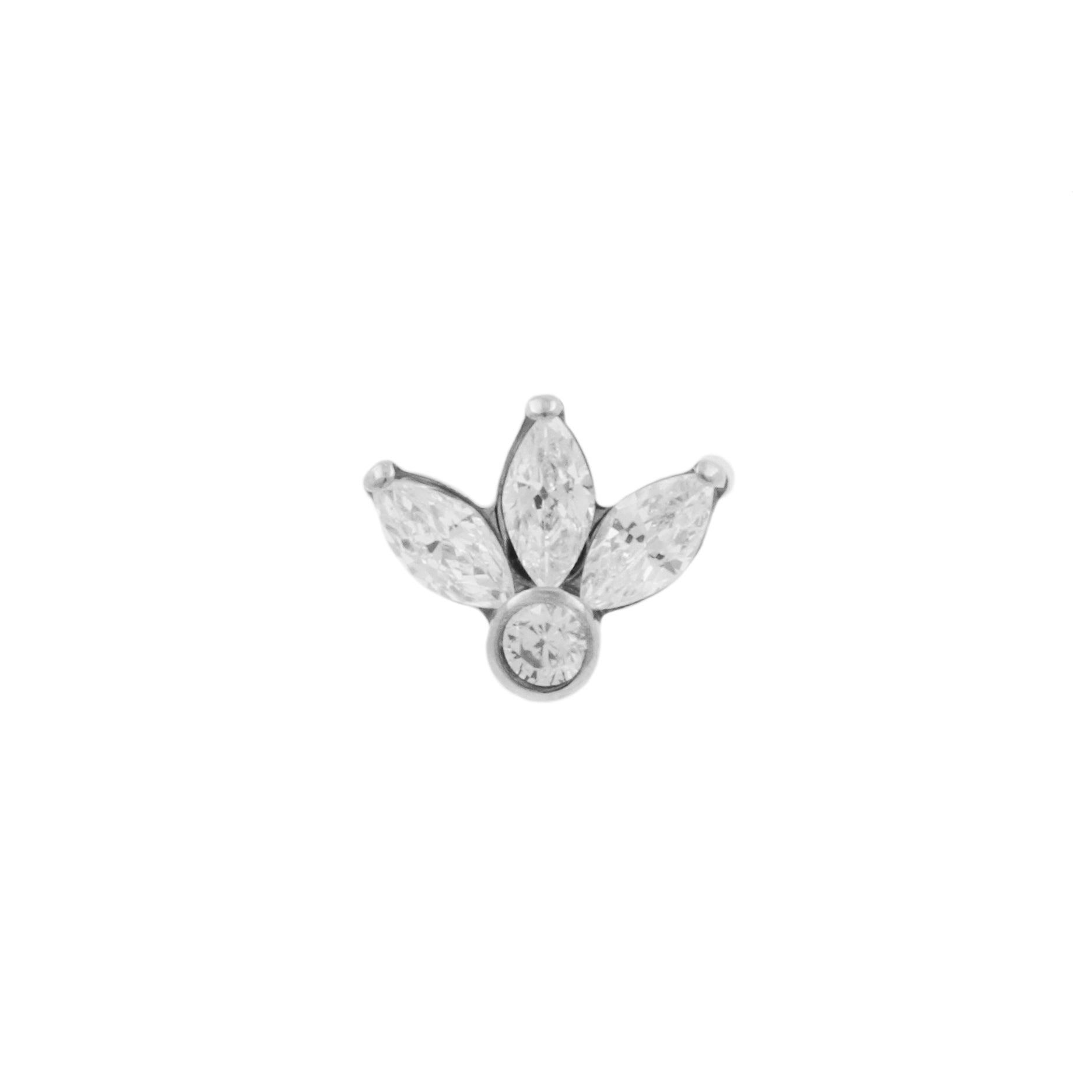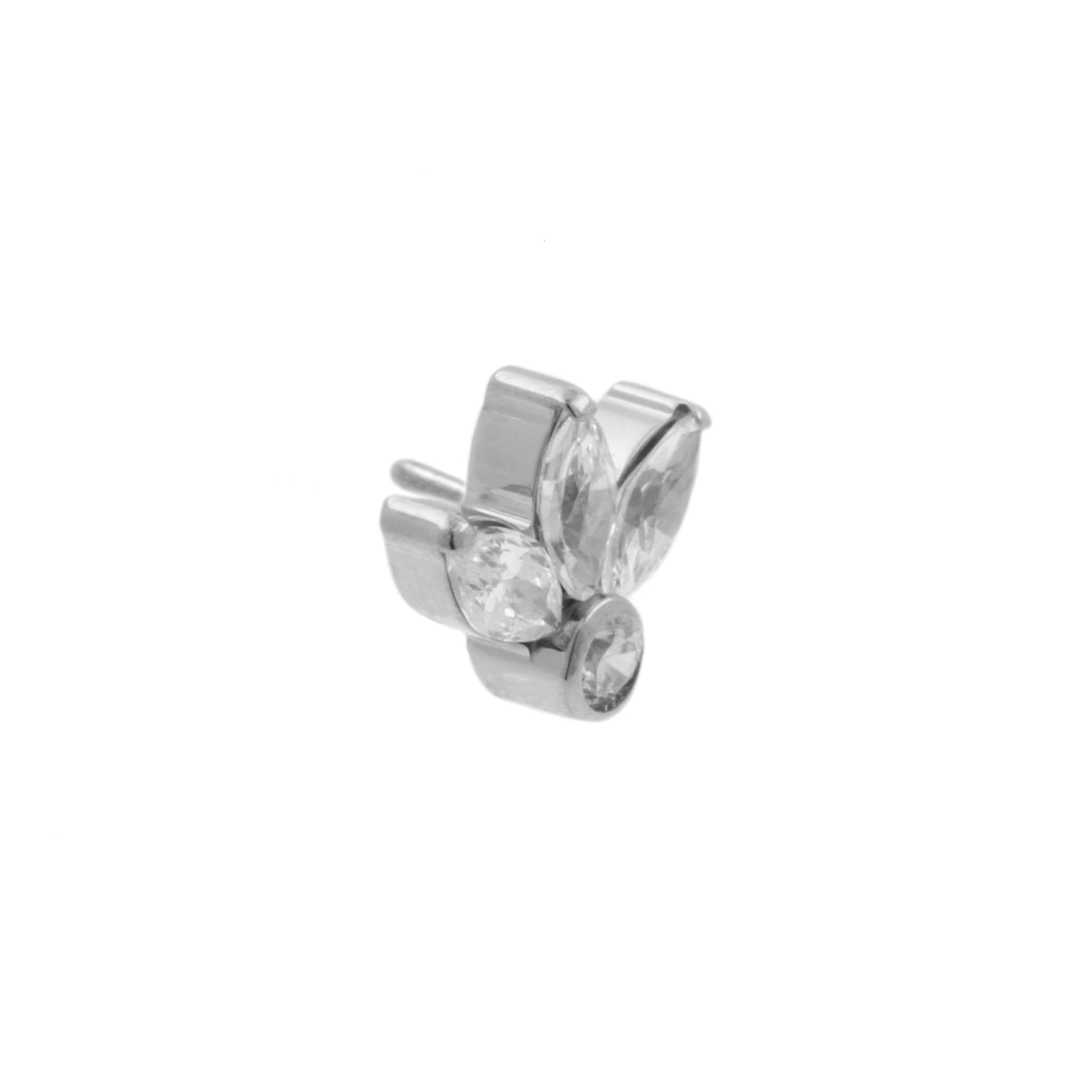 Titanium Zirconia Cluster Top - Clear instantly adds a stylish touch to your piercing. This Threadless Top is made of Titanium with a cubic zirconia in Clear. The threadless system allows you to easily combine this top with all our bars, which we call Threadless Base, for a perfect fit and ultimate comfort.