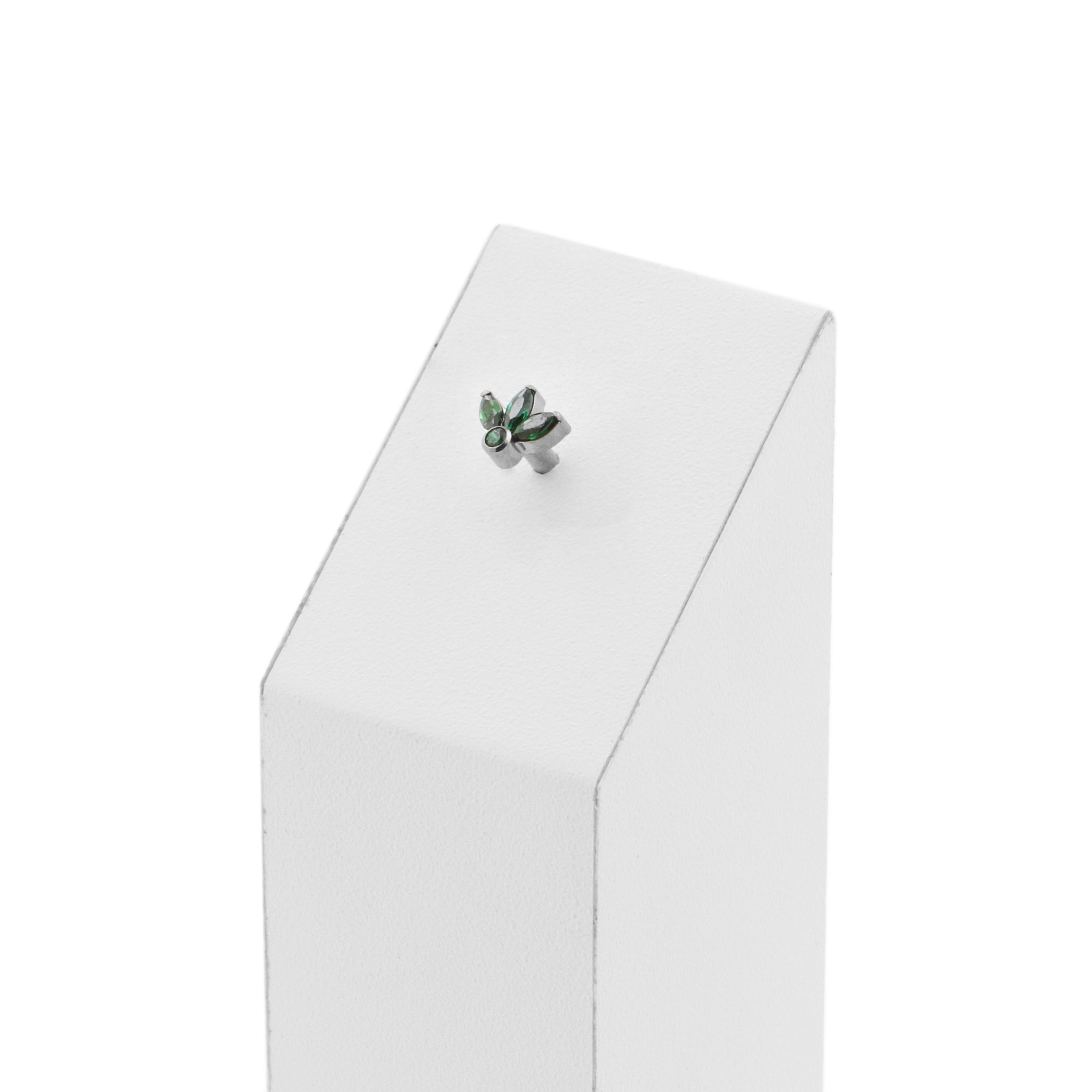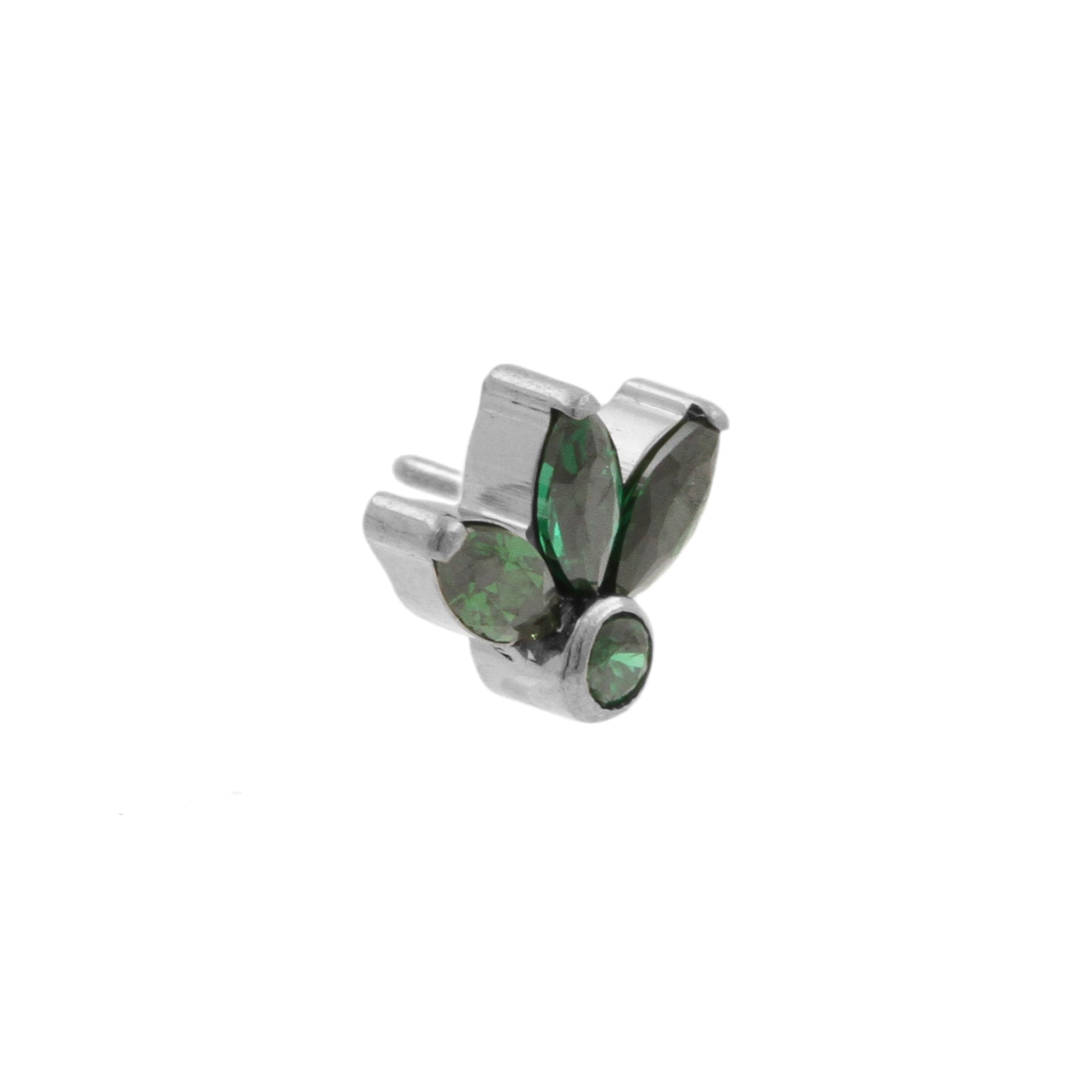 Titanium Zirconia Cluster Top - Dark Green instantly adds a stylish touch to your piercing. This Threadless Top is made of Titanium with a cubic zirconia in Dark Green. The threadless system allows you to easily combine this top with all our bars, which we call Threadless Base, for a perfect fit and ultimate comfort.