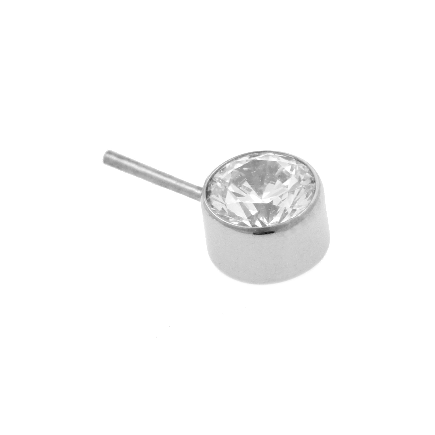 Titanium Zirconia Disc 90 Degrees - Silver instantly adds a stylish touch to your piercing. This Threadless Top is made of Titanium with a cubic zirconia in Clear. The threadless system allows you to easily combine this top with all our bars, which we call Threadless Base, for a perfect fit and ultimate comfort.