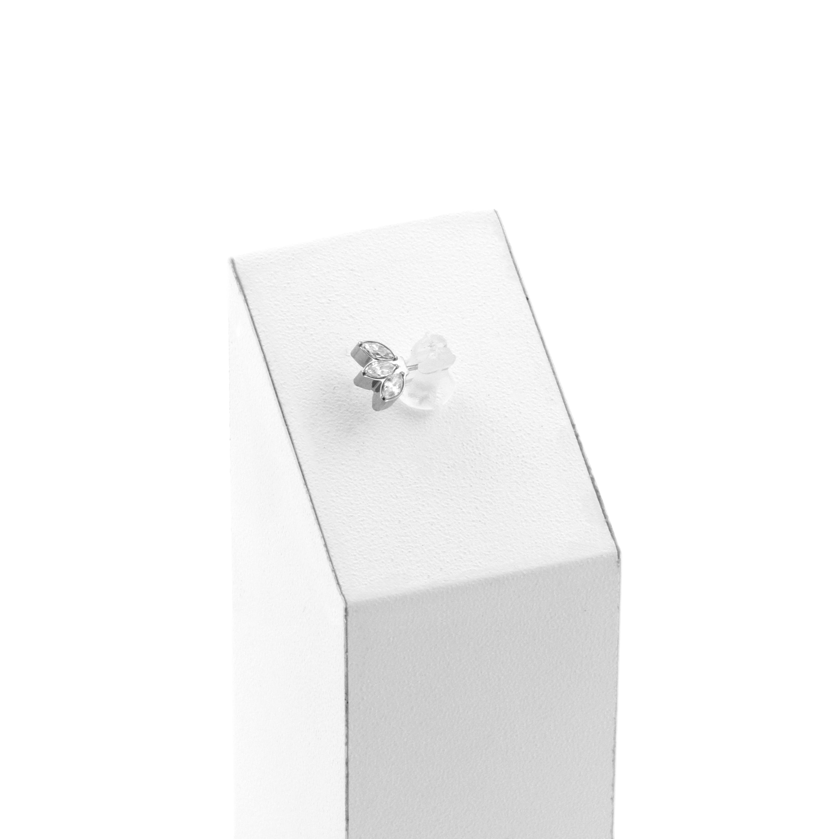 Titanium Zirconia Marquise Nipple Cluster - Silver instantly adds a stylish touch to your piercing. This Threadless Top is made of Titanium with a cubic zirconia in Clear. The threadless system allows you to easily combine this top with all our bars, which we call Threadless Base, for a perfect fit and ultimate comfort.