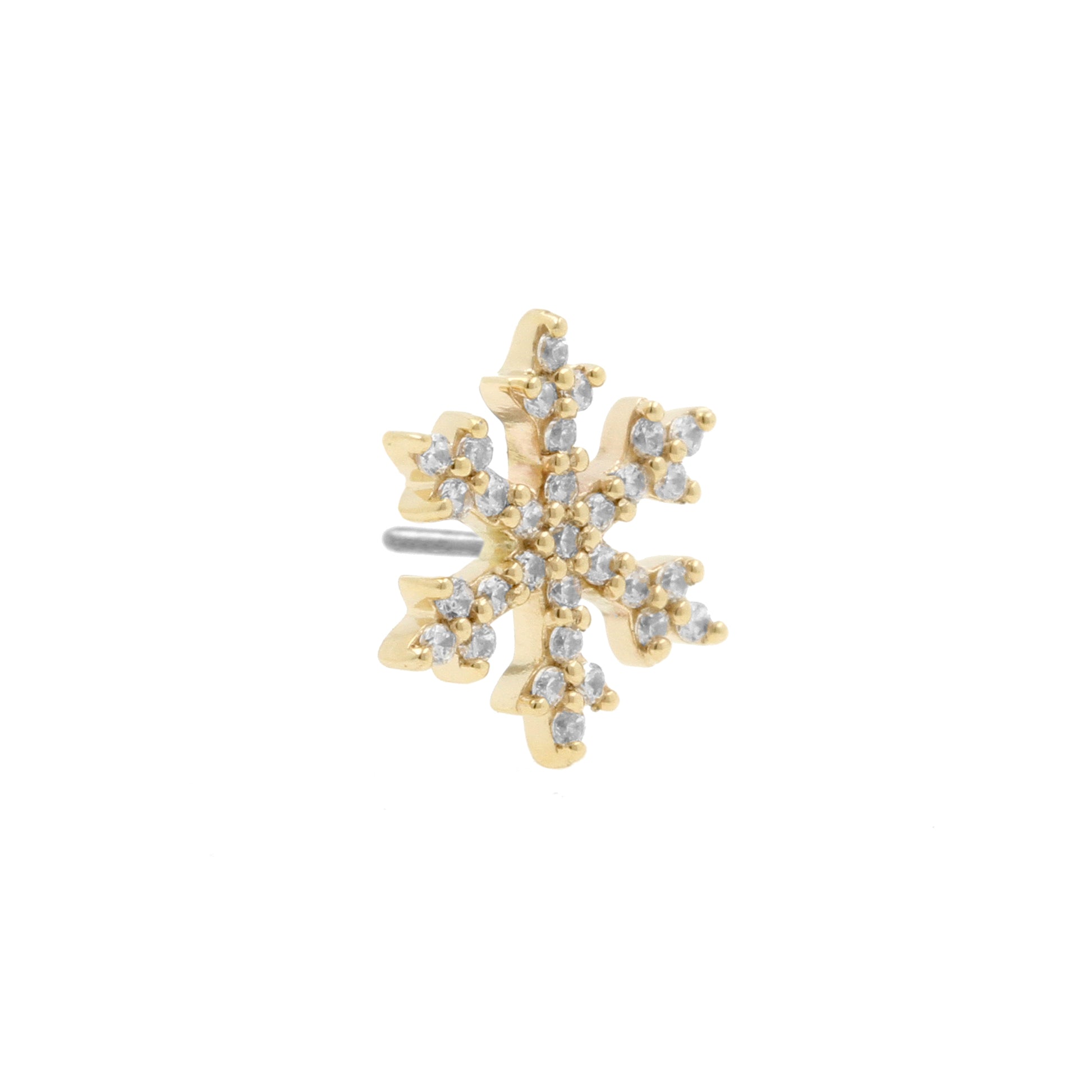 14 Karaats Gouden Sneeuwvlok Met Zirkonia – Threadless Top van 14 Karaats Goud. Compatibel met alle Threadless Base staafjes en voorzien van een handig push/pull systeem zonder schroefdraad.