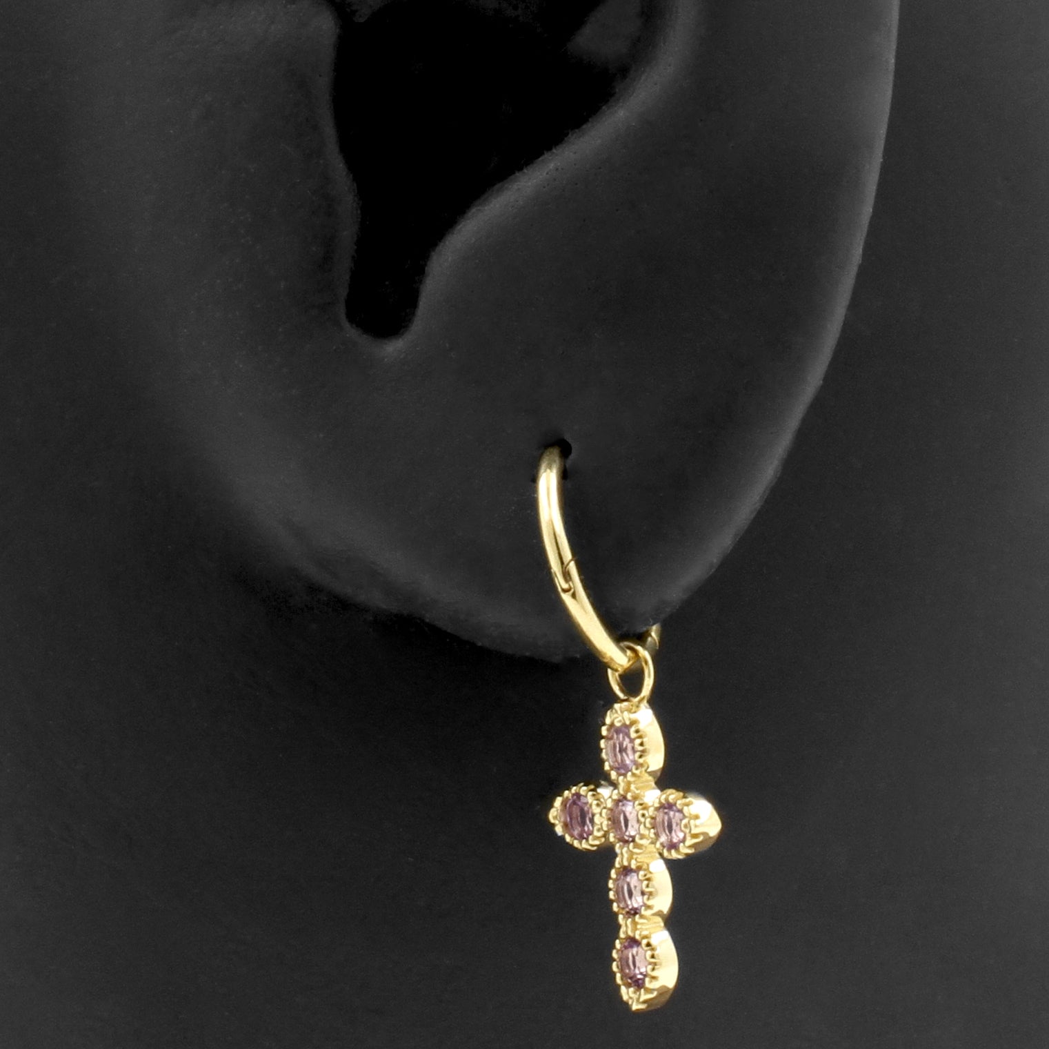 Geef je piercings een upgrade of maak je earparty extra mooi: met onze Click Ring Bedels lukt het zeker! Deze prachtige bedel is gemaakt van 18 karaats goud met echte roze amethist en geschikt voor click ringen met een dikte tot en met 2 mm. De Click Ring Bedels zijn supermakkelijk in gebruik, je klikt je ring open, schuift de bedel erom heen en klik de ring weer dicht. De Click Ring Bedels zijn verkrijgbaar in verschillende designs, zo kun je eindeloos combineren en je piercings omtoveren tot iets unieks! Perfect voor diverse oor piercings of kraakbeen piercings.