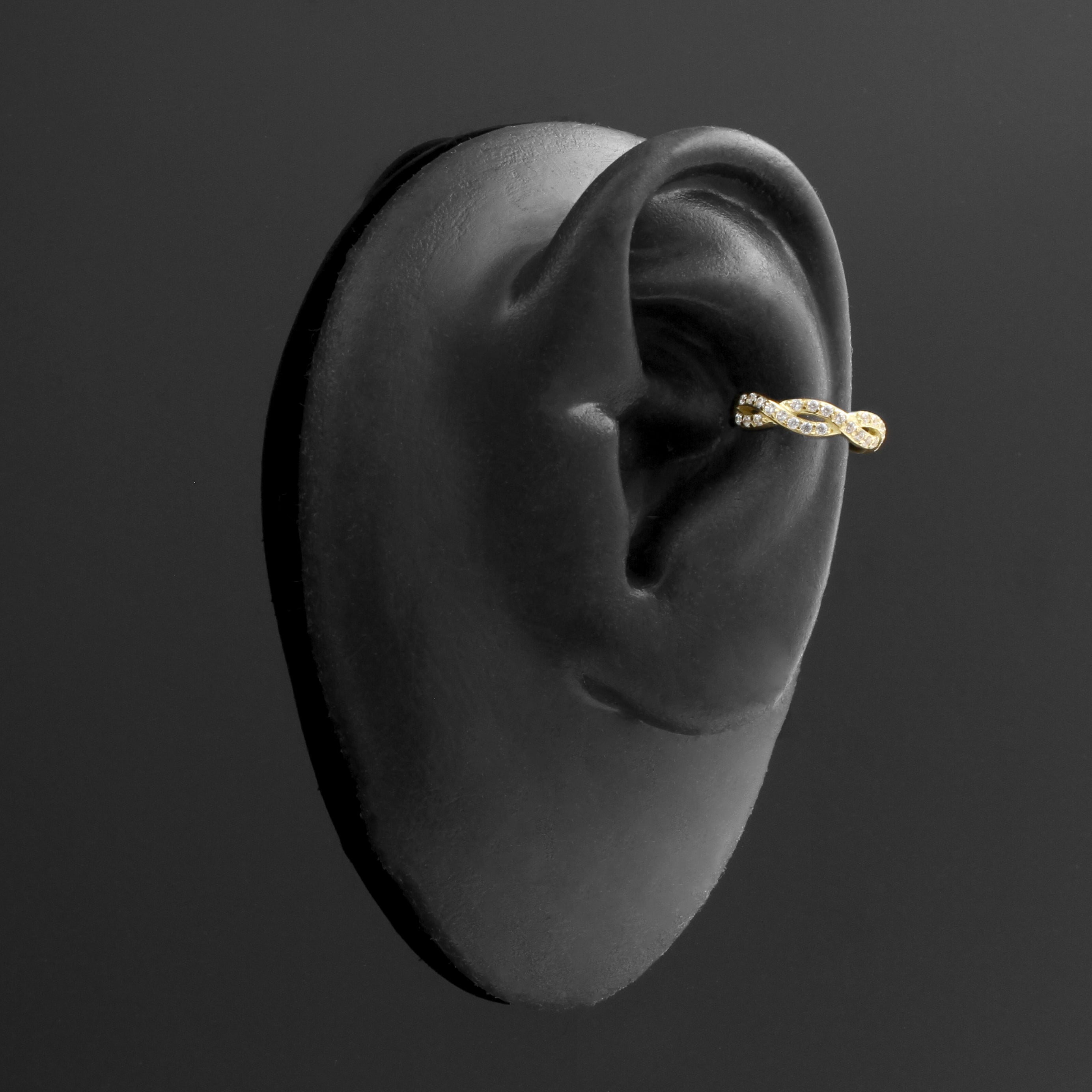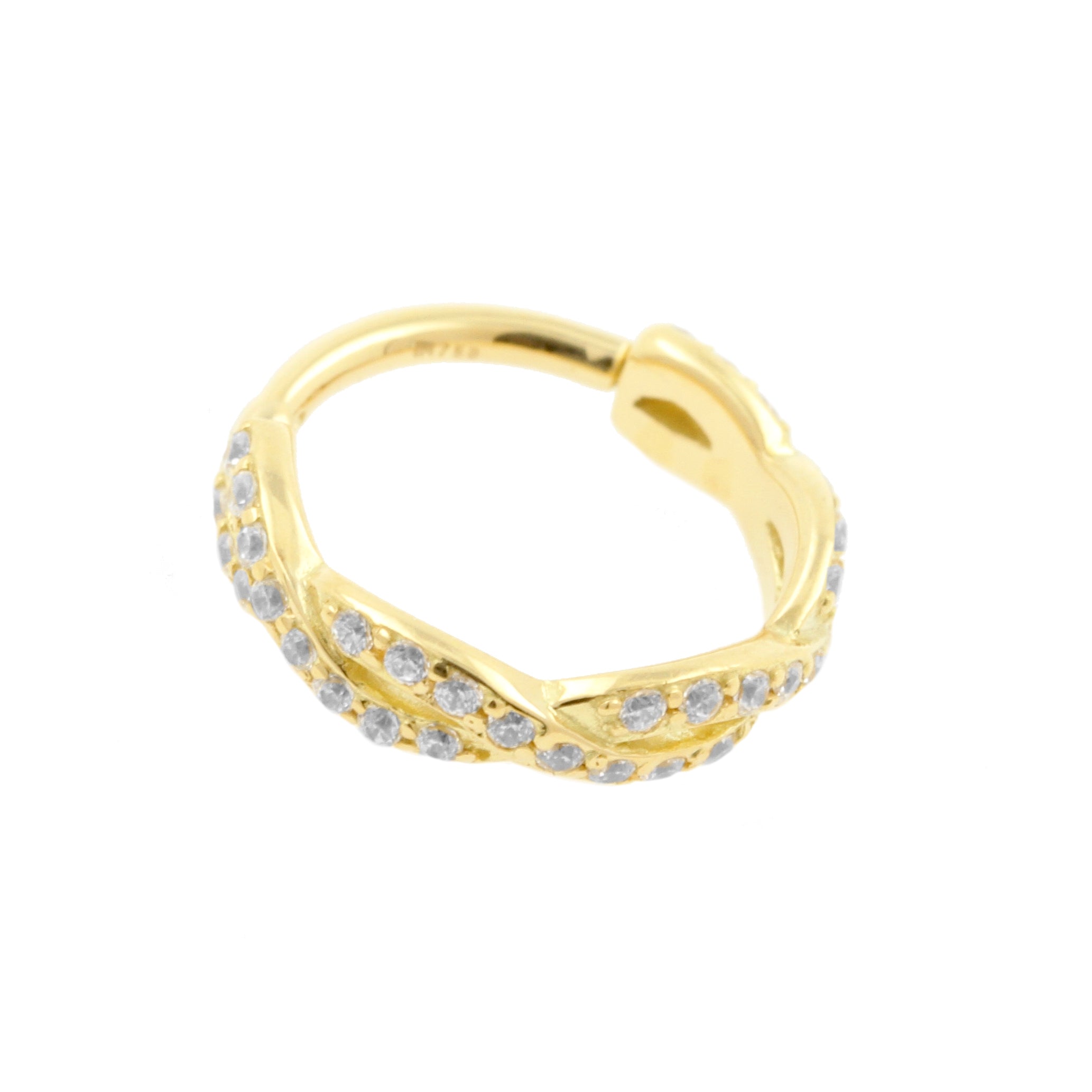 18 Karaats Gouden Conch Clicker - Zirkonia Braid Clear