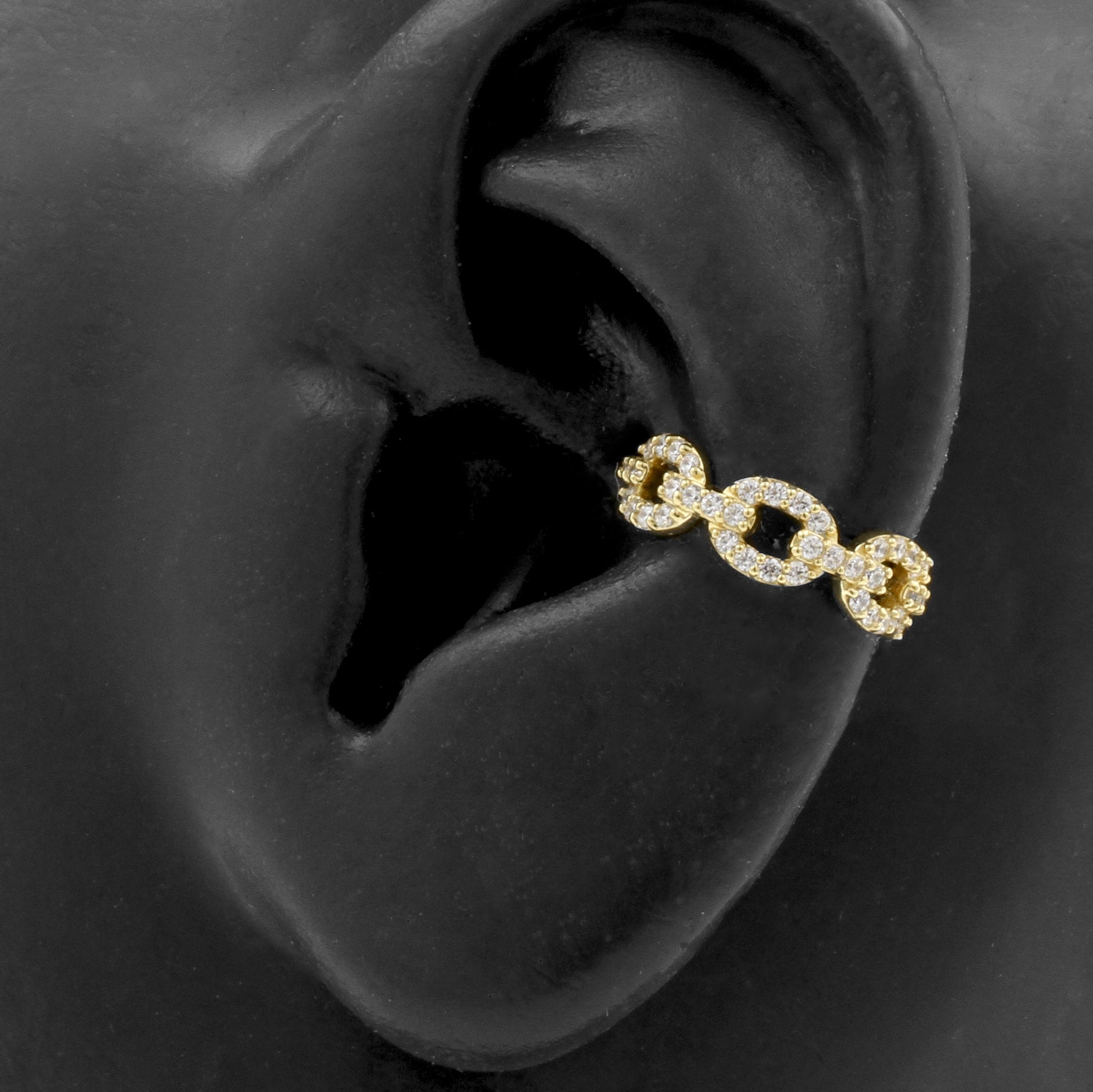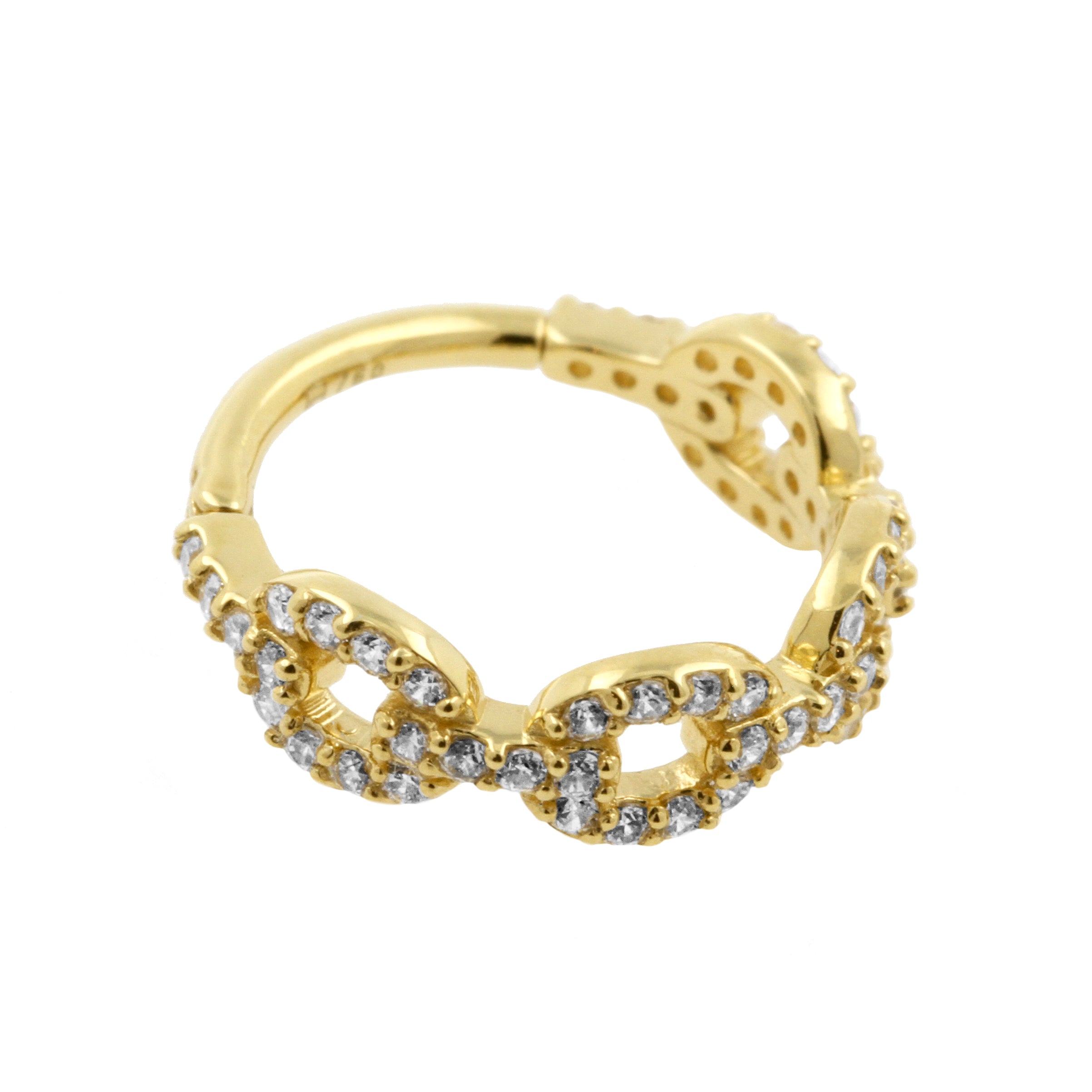 18 Karaats Gouden Conch Clicker - Zirkonia Chain Clear