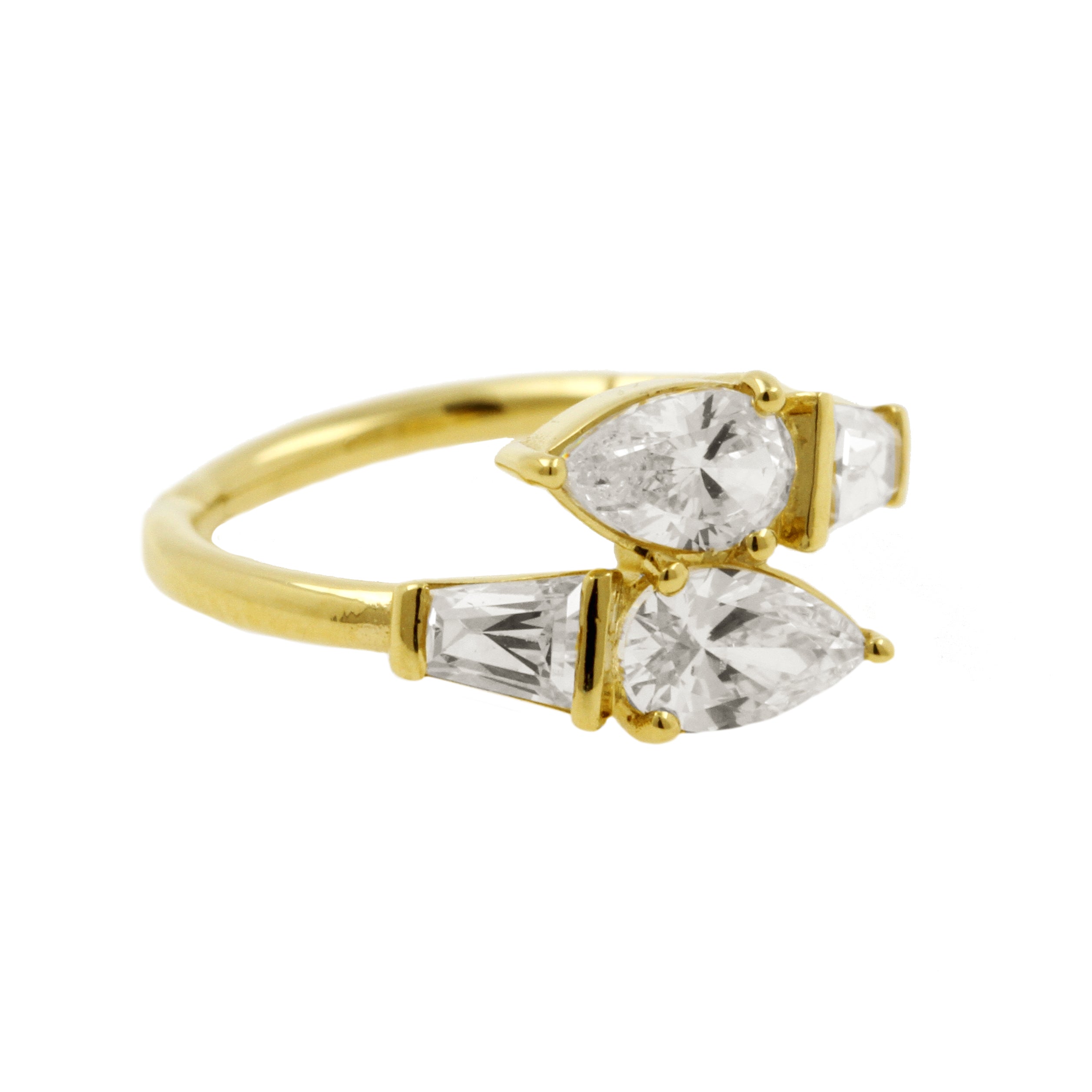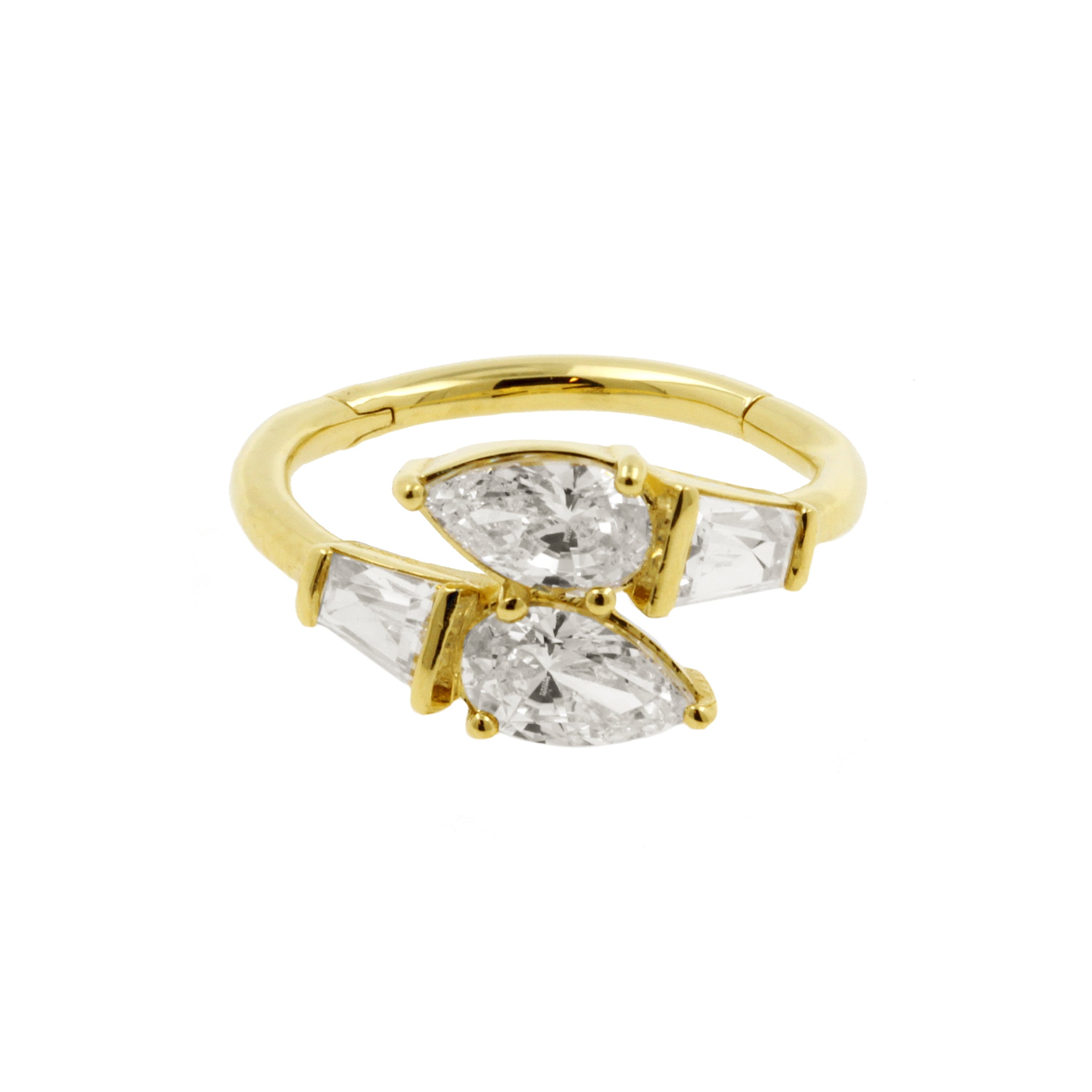 18 Karaats Gouden Conch Clicker - Zirkonia Droplet Vine Clear