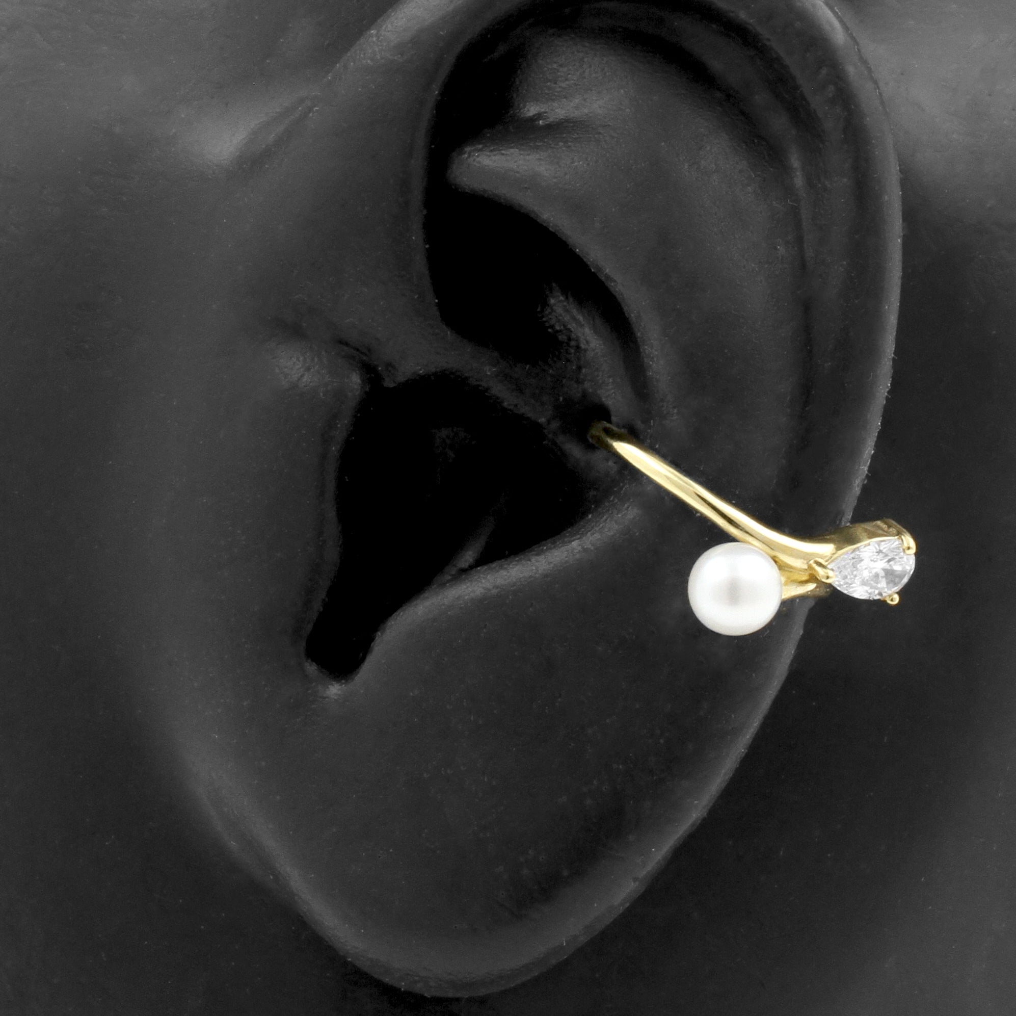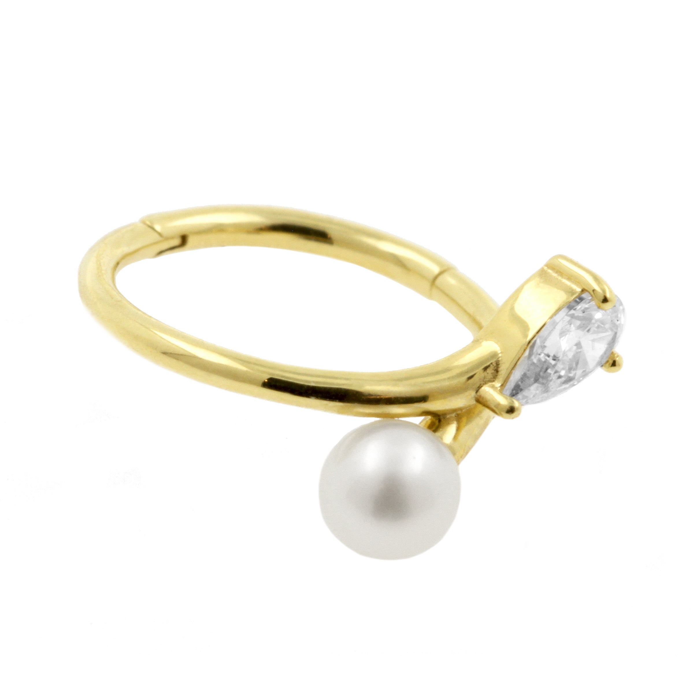 18 Karaats Gouden Conch Clicker - Zirkonia En Parel Clear
