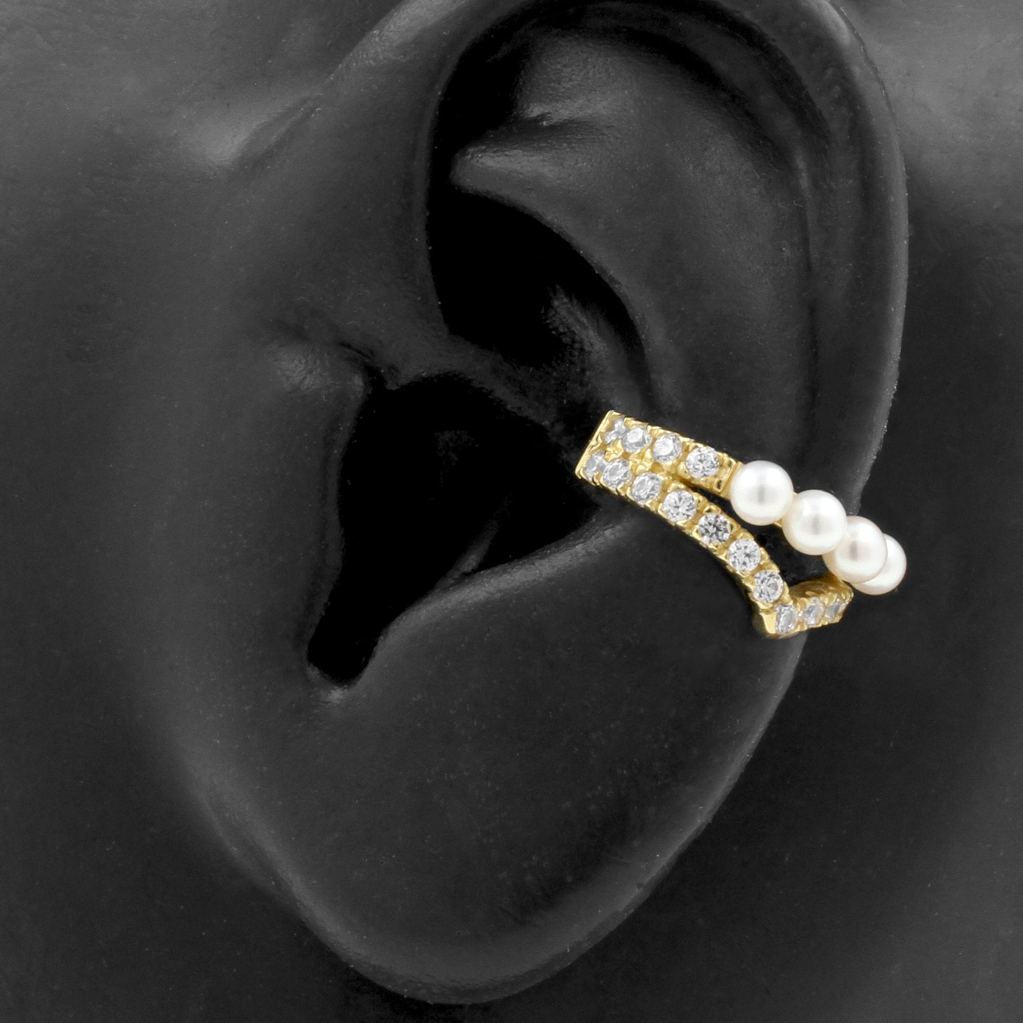 18 Karaats Gouden Conch Clicker - Zirkonia En Parel Tiara Clear