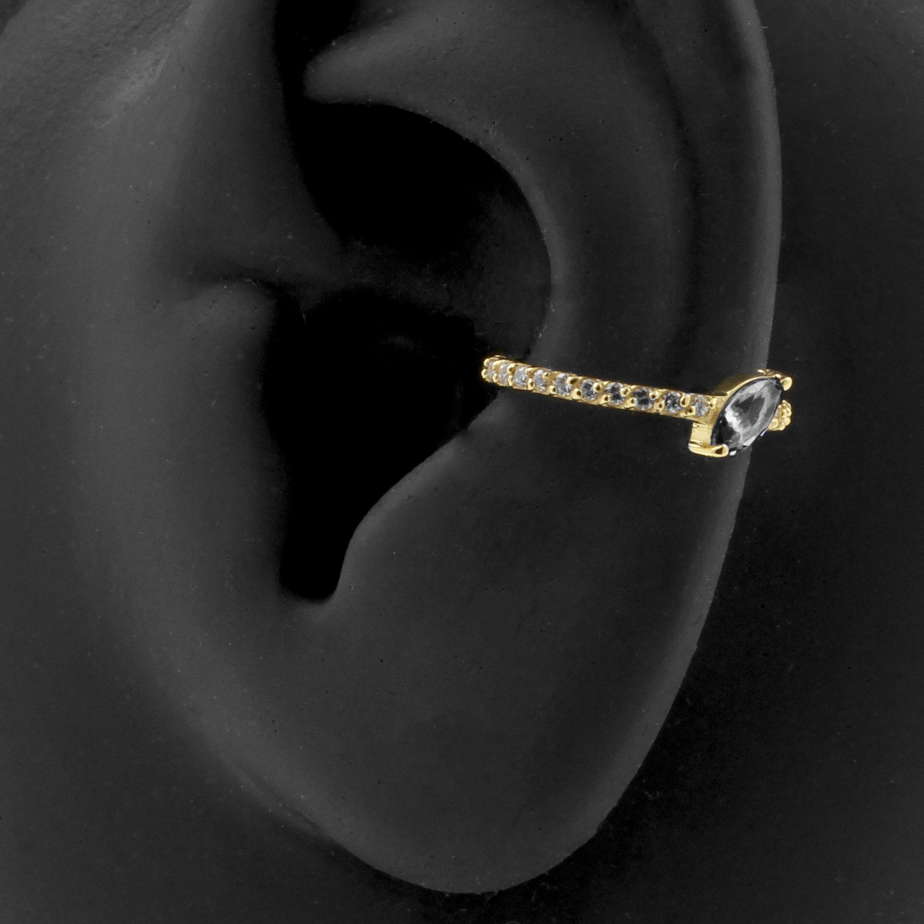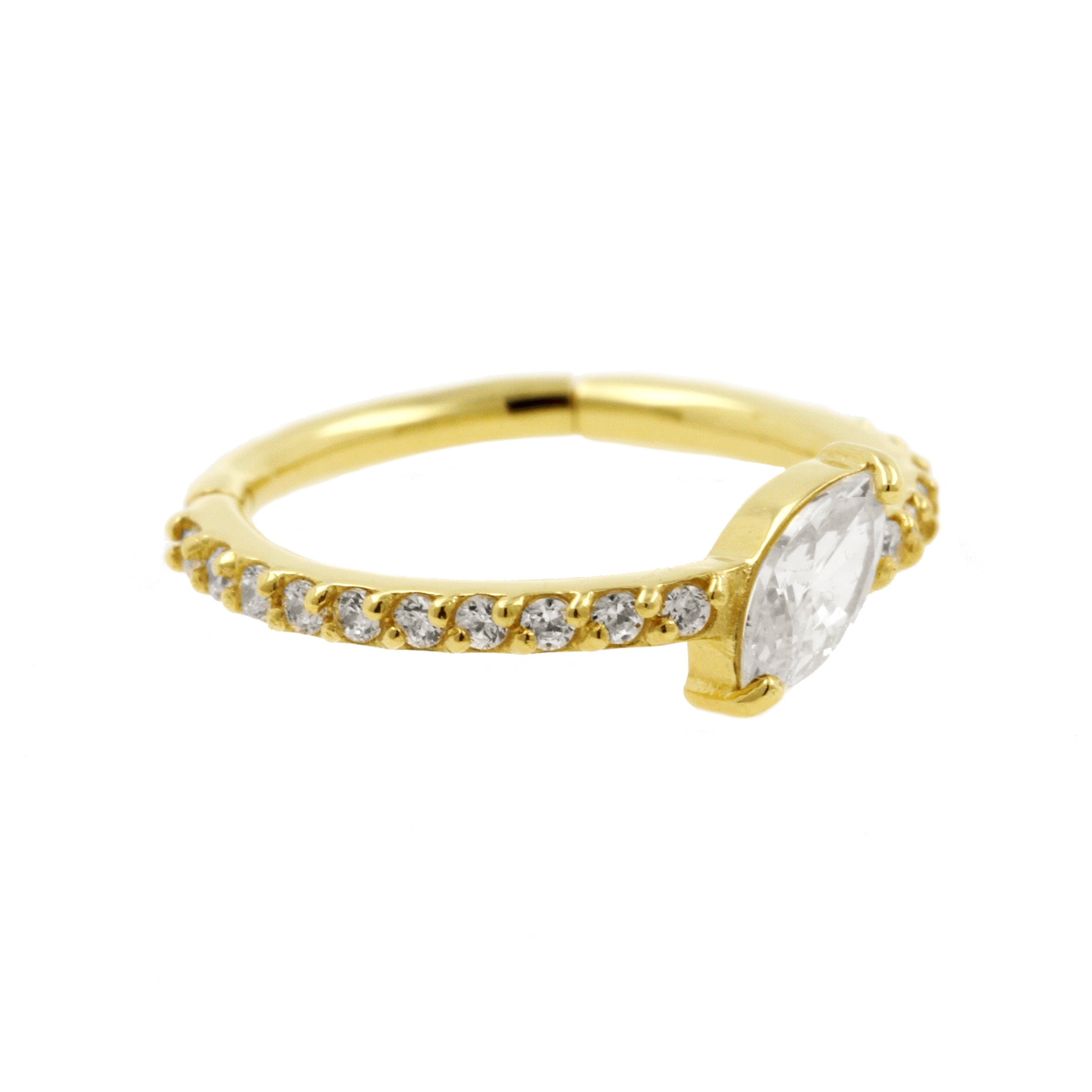 18 Karaats Gouden Conch Clicker - Zirkonia Marquise En Gems Clear