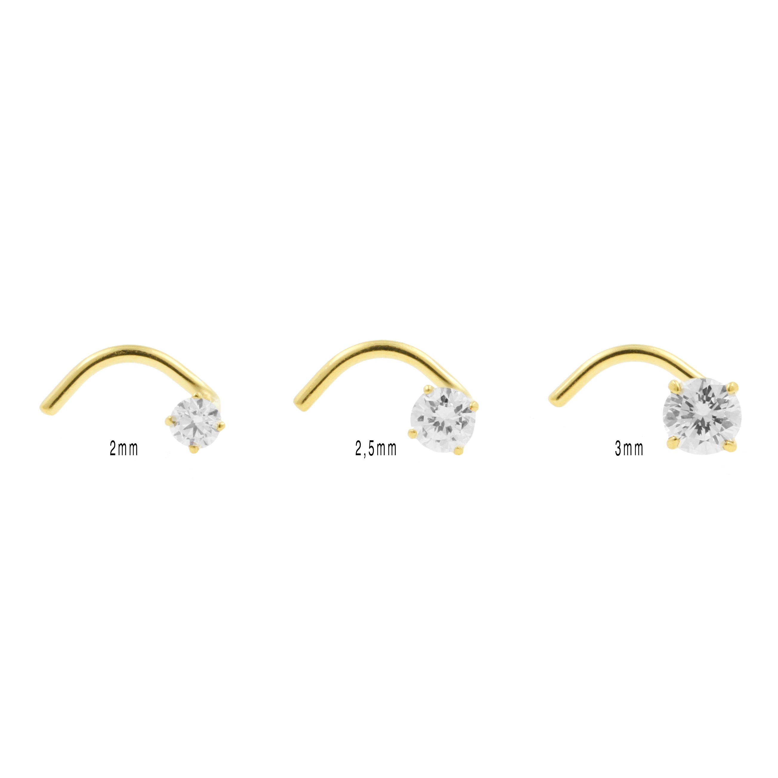 Neusstud van echt goud, speciaal voor je neuspiercing! Deze prachtige neusstud is gemaakt van 18 karaats goud en heeft een dikte van 0,8 mm. Aan de bovenzijde is deze stud voorzien van een schitterende, lab-created diamond in sierlijke zetting. Het staafje van de neusstud is rond gebogen zodat het sieraad goed op zijn plek blijft zitten. Verkrijgbaar met verschillende maten zirkonia!
