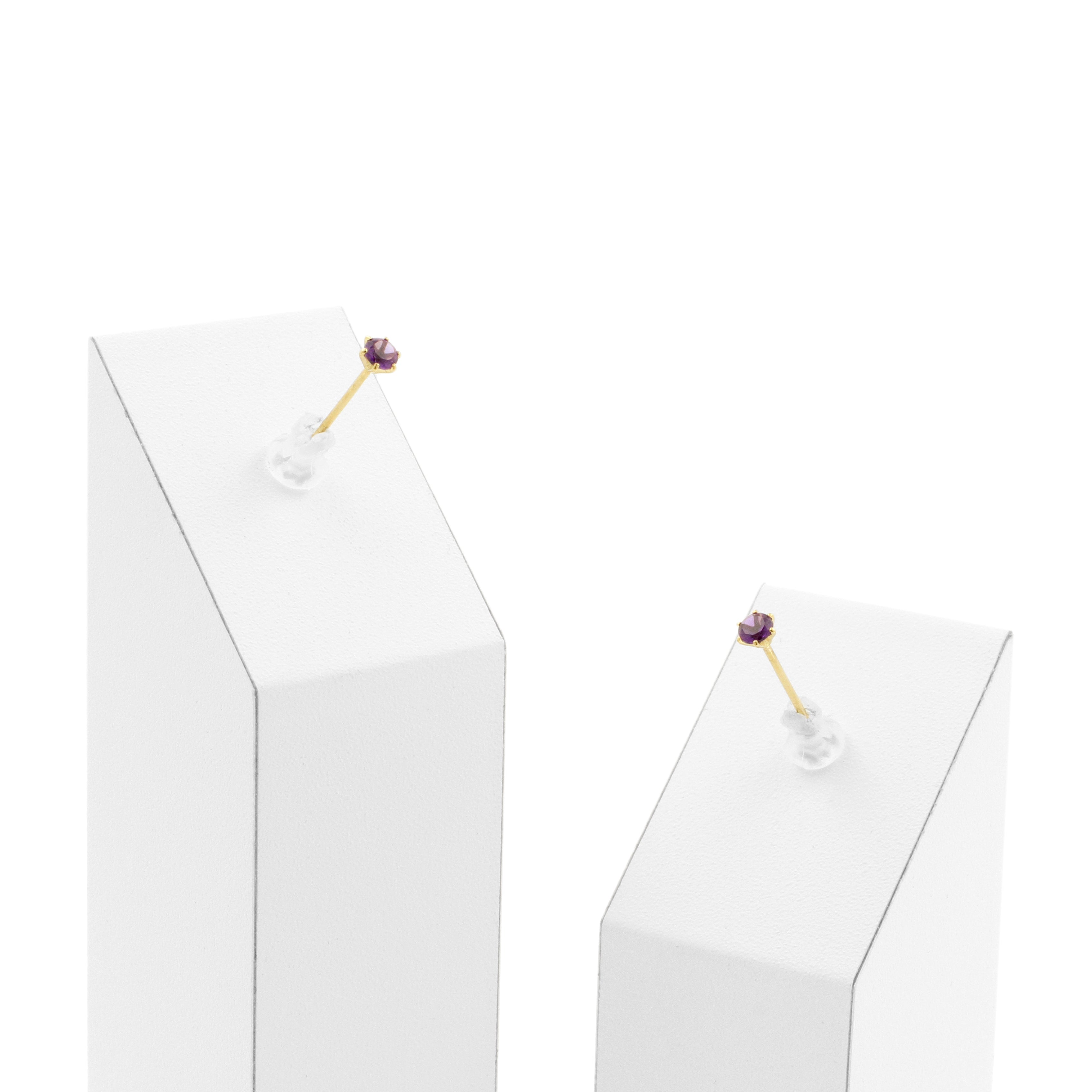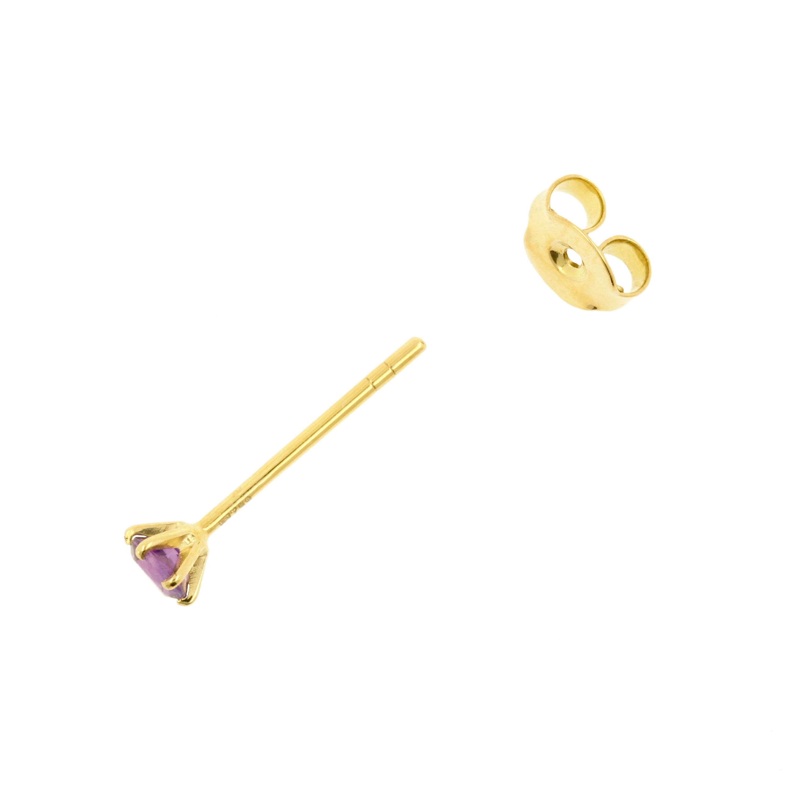 Massief 18 karaats gouden oorstekers met Donkere Amethist (3 mm) in ronde zetting. Inclusief vlindersluiting.