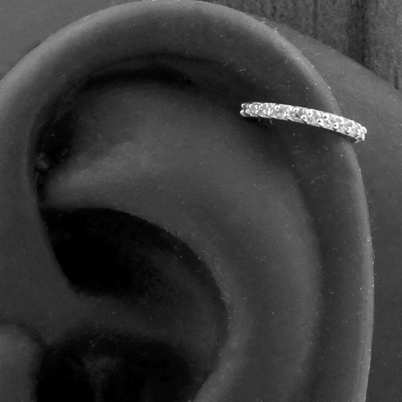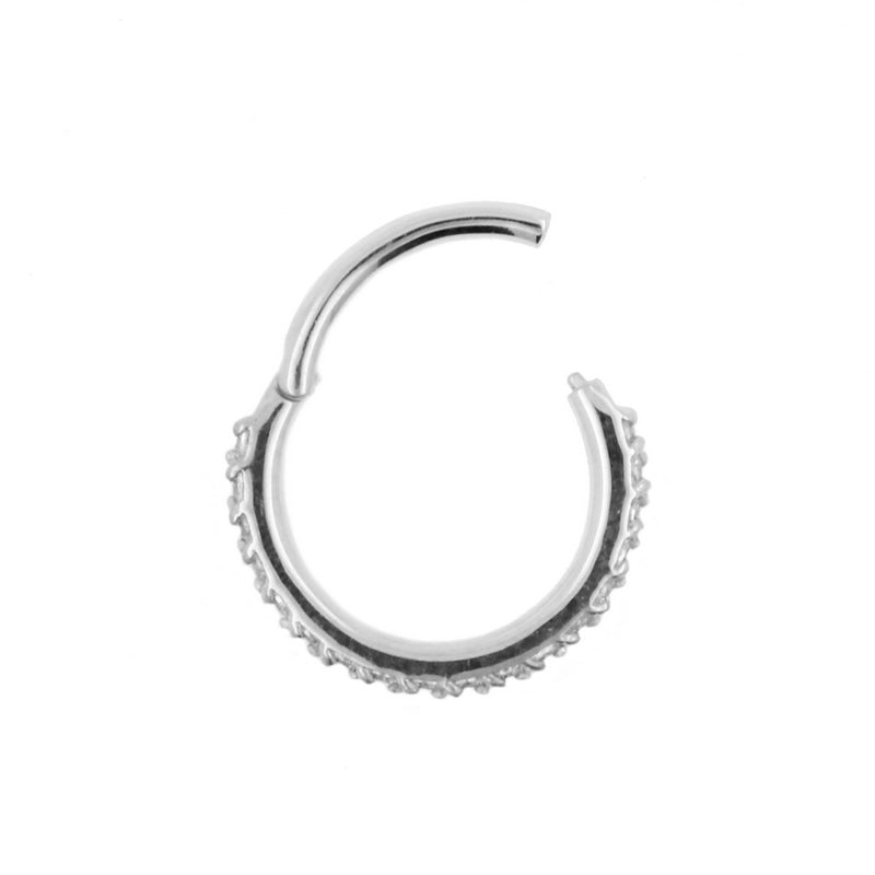 Gun jezelf de beste kwaliteit voor je piercings met deze echt gouden click ringen! Deze mooie Click Ring  is gemaakt van 18 karaats witgoud en rondom ingezet met Zirkonia. Makkelijk te open en te sluiten, dus makkelijk te verwisselen. Het segmentje in de ring zit vast aan de ring en heeft aan een kant een scharnier. Je klikt hem daarom zo open, doet hem in je piercing en klikt hem weer dicht. Done! De onderzijde van deze ringen is ingezet met de beste zirkonia's. Laat ze schitteren in je diverse piercings in je oren!