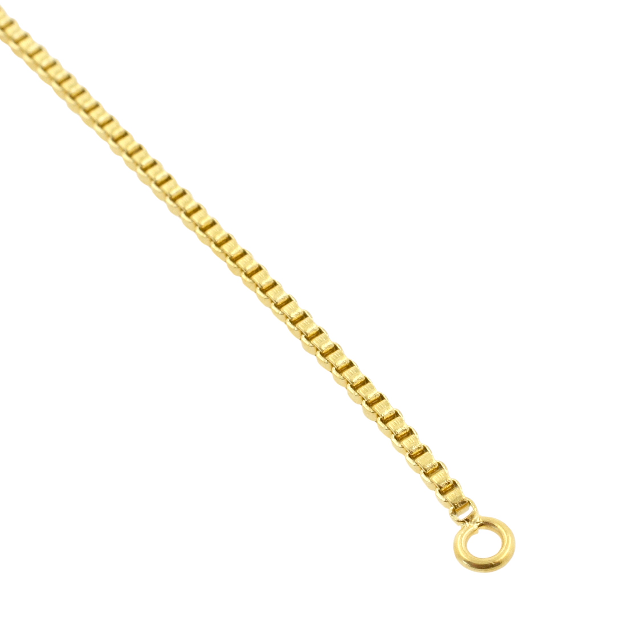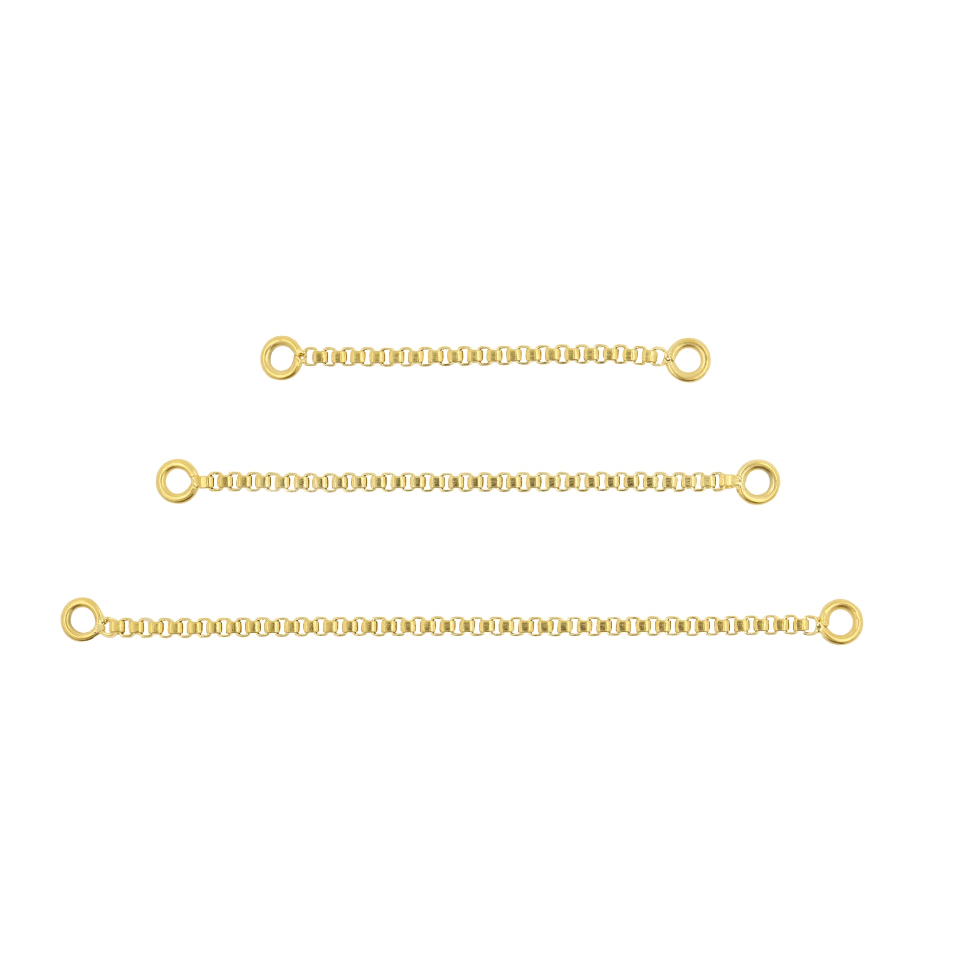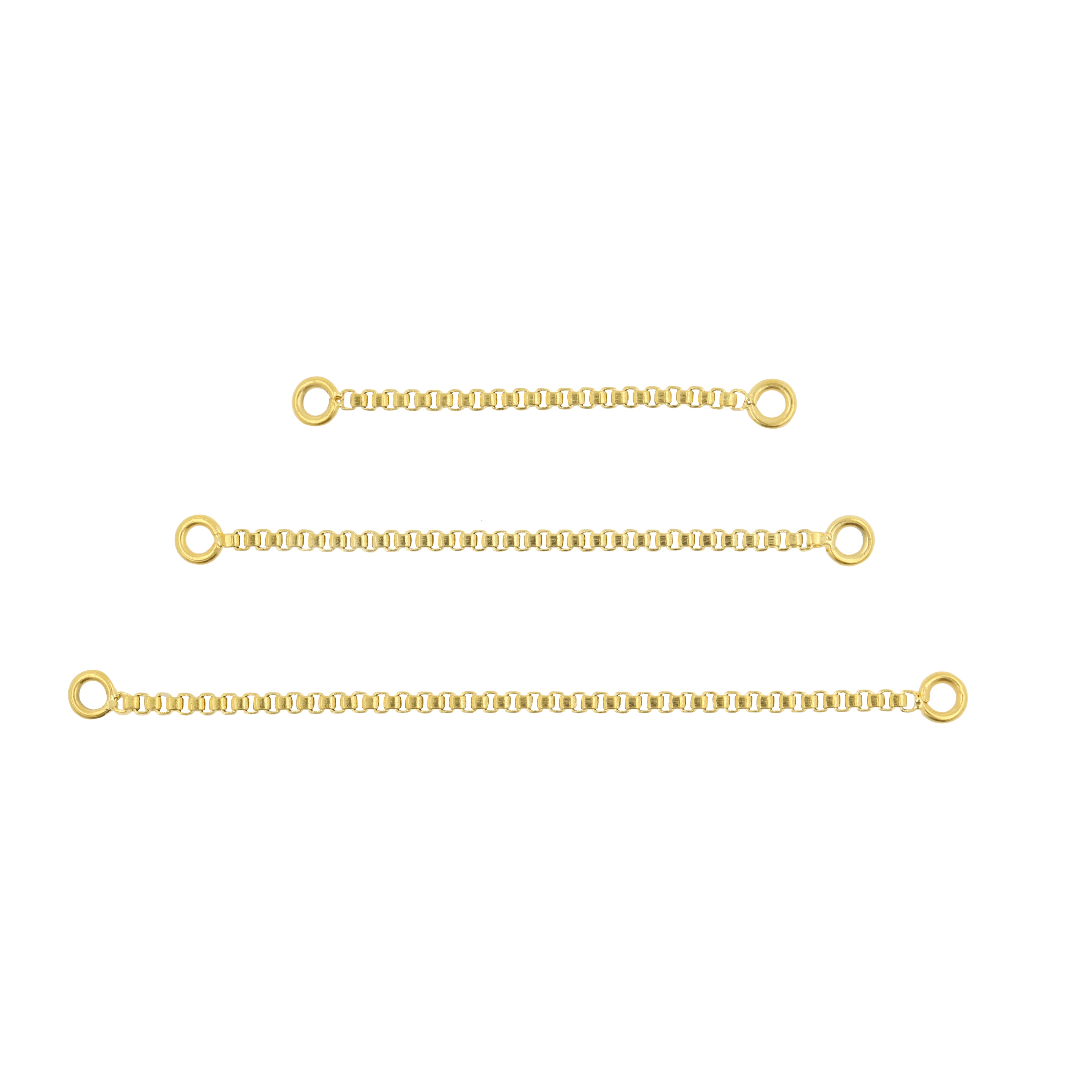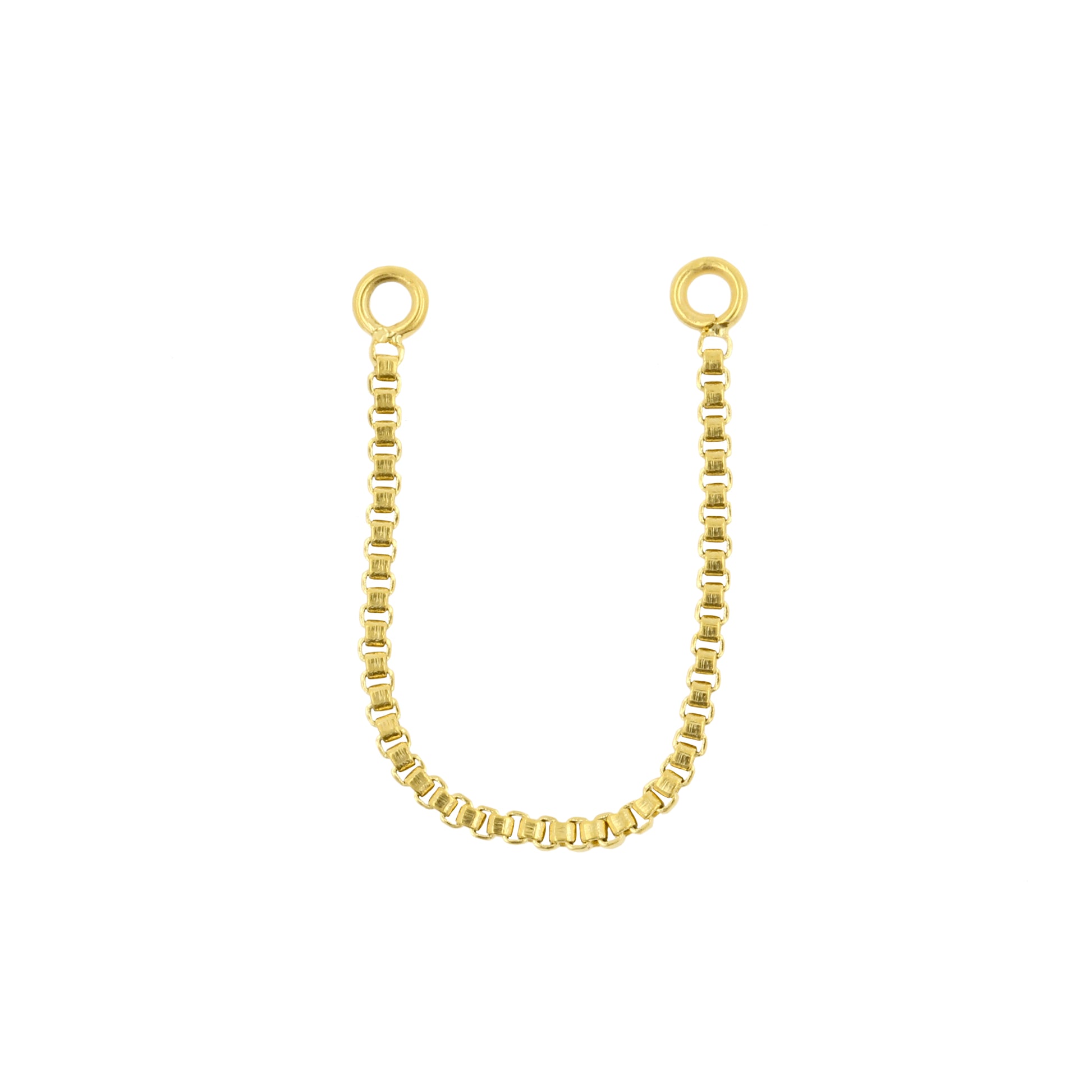 Goudkleurig chirurgisch staal met gouden p.v.d. coating piercing kettinkje. Aan de uiteindes zitten bevestigingsringetjes van 1,6 mm binnendiameter, geschikt voor piercings tot 1,2 mm dikte. Leverbaar in 20, 30, 40 mm lengte.- Chirurgisch Staal met gouden P.V.D. coating- Bevestigingsringetjes: binnendiameter 1,6 mm- Geschikt voor piercings tot 1,2 mm dikte- Lengtes: 20, 30, 40 mmEen stijlvol accessoire voor creatieve piercingcombinaties.