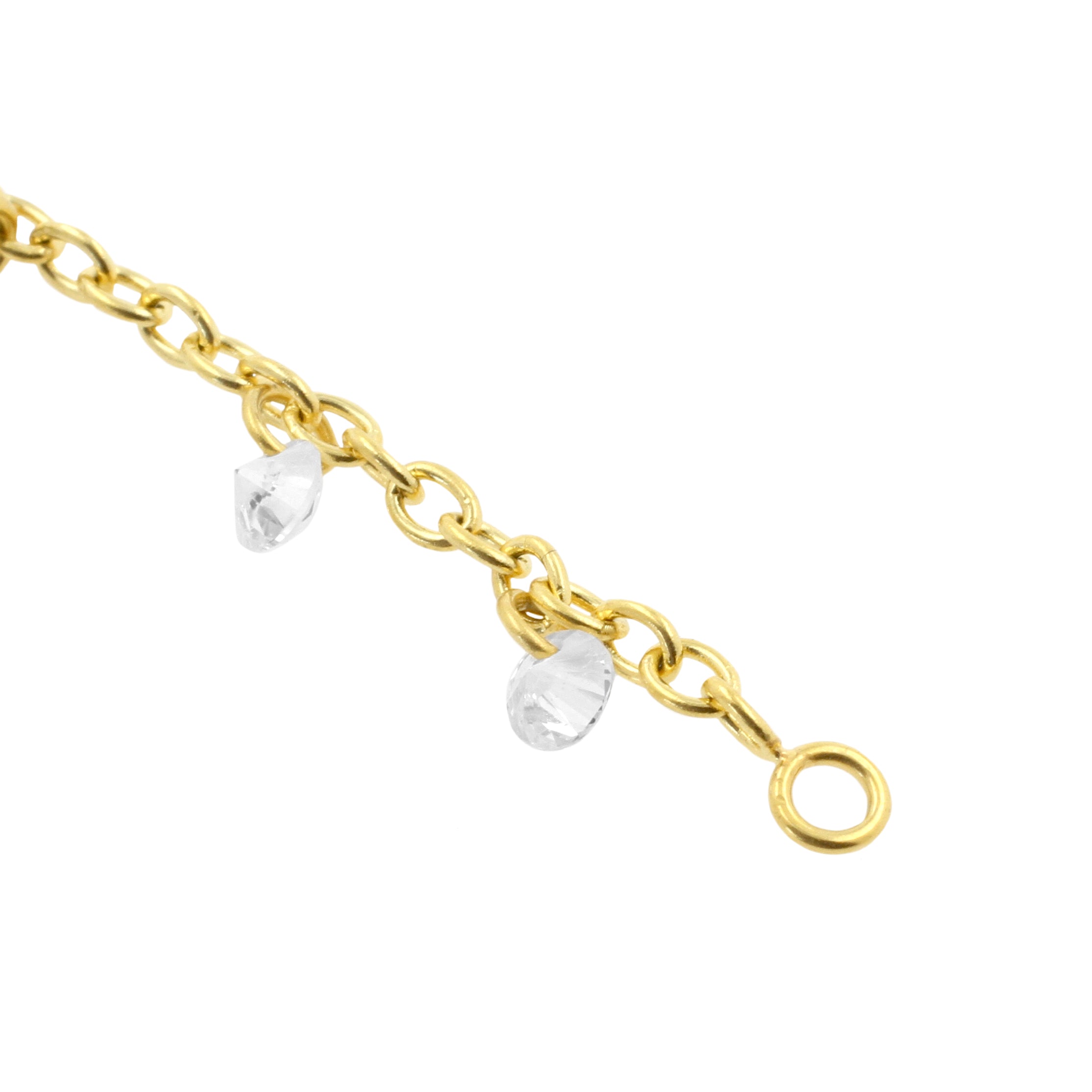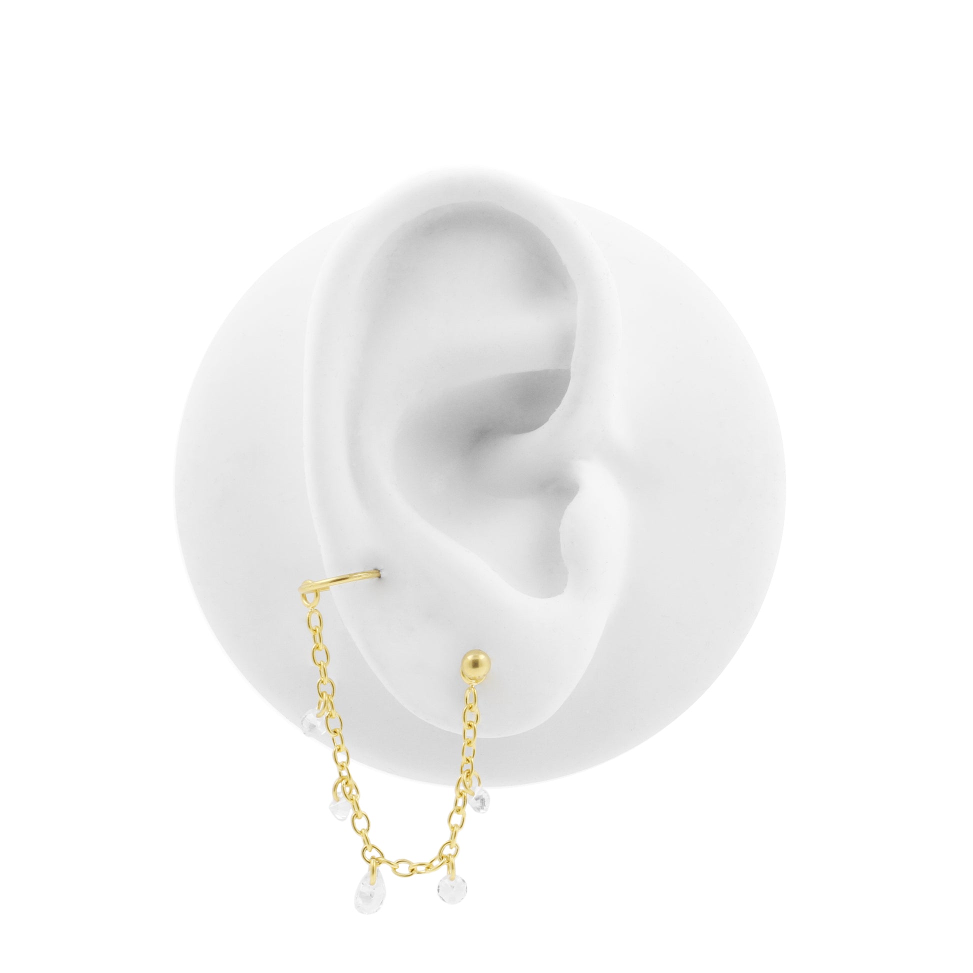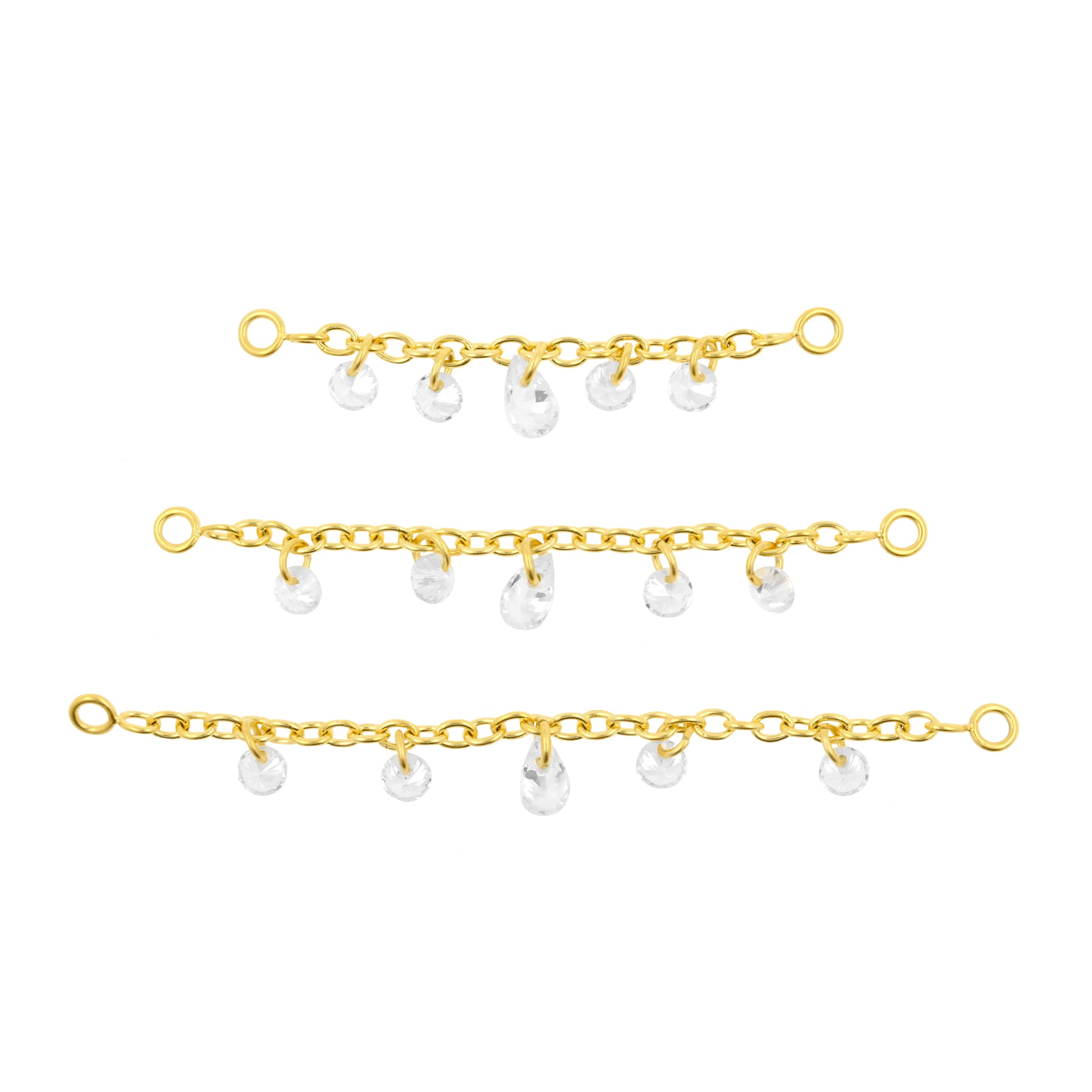 Goudkleurig chirurgisch staal met gouden p.v.d. coating piercing kettinkje, voorzien van Versierd met clear zirkonia steentjes. Aan de uiteindes zitten bevestigingsringetjes van 1,6 mm binnendiameter, geschikt voor piercings tot 1,2 mm dikte. Leverbaar in 30, 40, 50 mm lengte.- Chirurgisch Staal met gouden P.V.D. coating- Versierd met clear zirkonia steentjes- Bevestigingsringetjes: binnendiameter 1,6 mm- Geschikt voor piercings tot 1,2 mm dikte- Lengtes: 30, 40, 50 mmEen stijlvol accessoire voor creatieve piercingcombinaties.