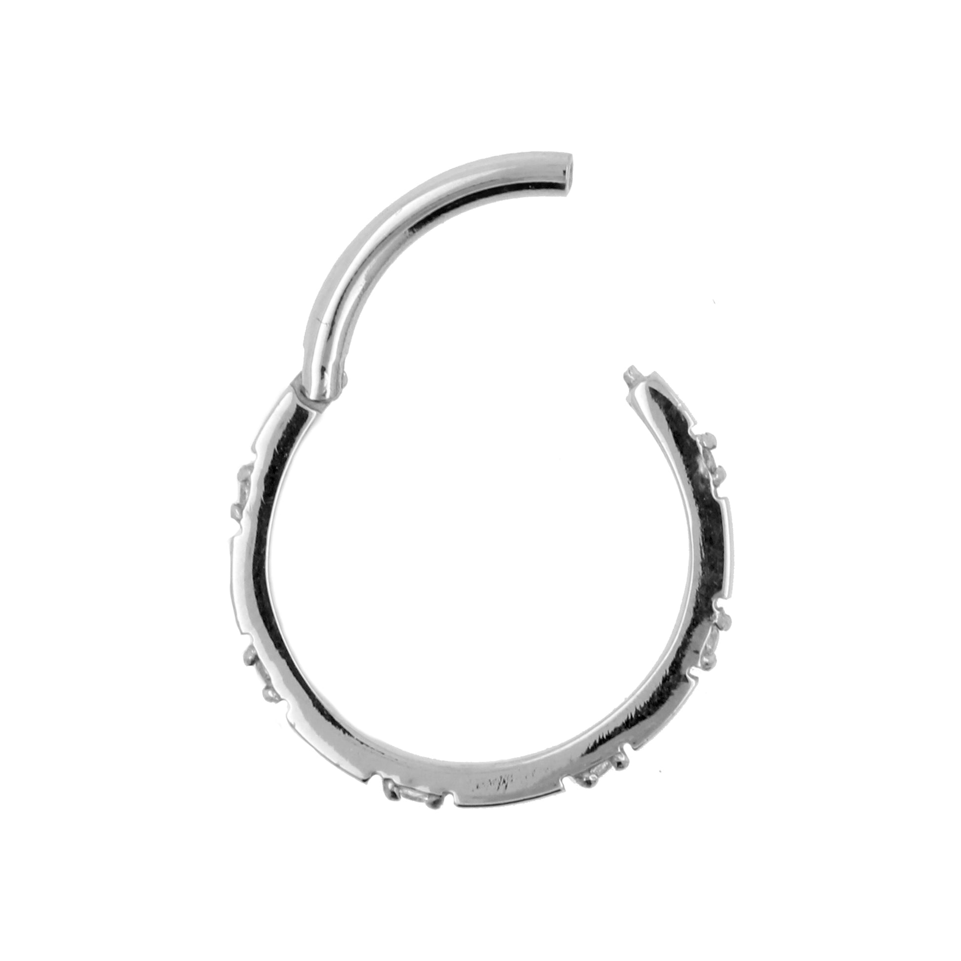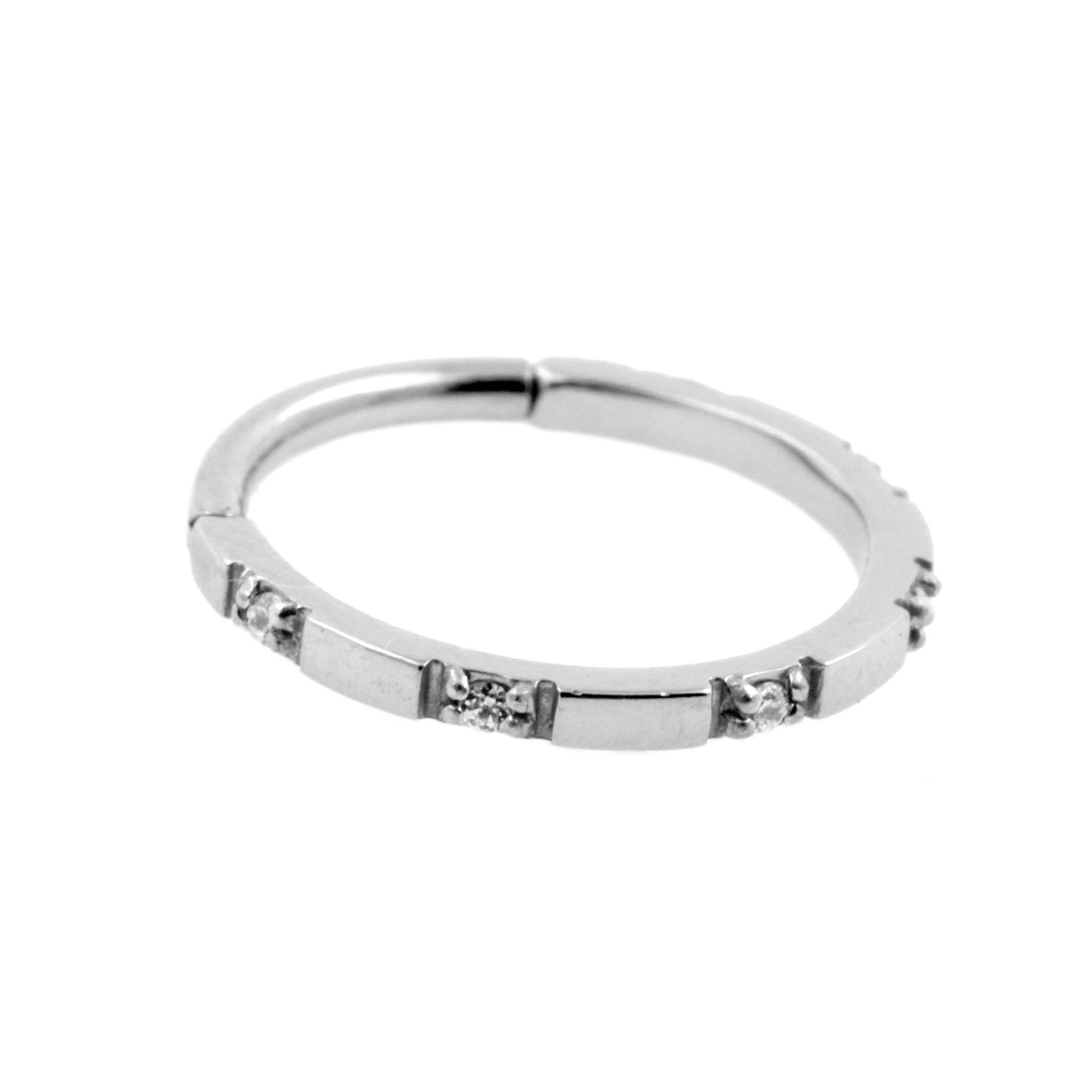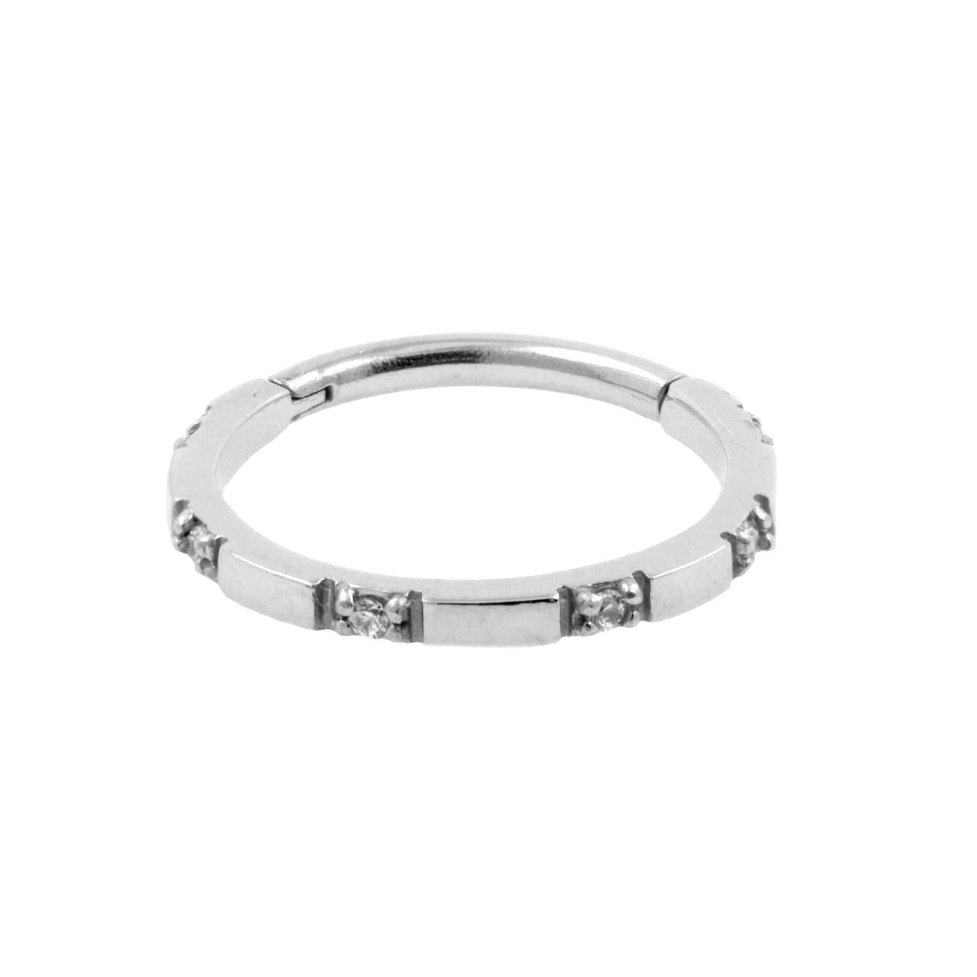 Klik, en het zit! Mooie Click Ring voor je piercings, gemaakt van chirurgisch staal en ingezet met een mooie Zirkonia's. Makkelijk in en uit te doen en supercomfortabel. Het segmentje in deze ring zit vast aan de ring en de ring heeft aan een zijde een scharnier. Je klikt hem zo open, doet hem in je piercing en klikt hem weer dicht. Done! Deze click ringen zijn ideaal voor je conch piercings, maar kunnen ook in andere piercings gedragen worden.