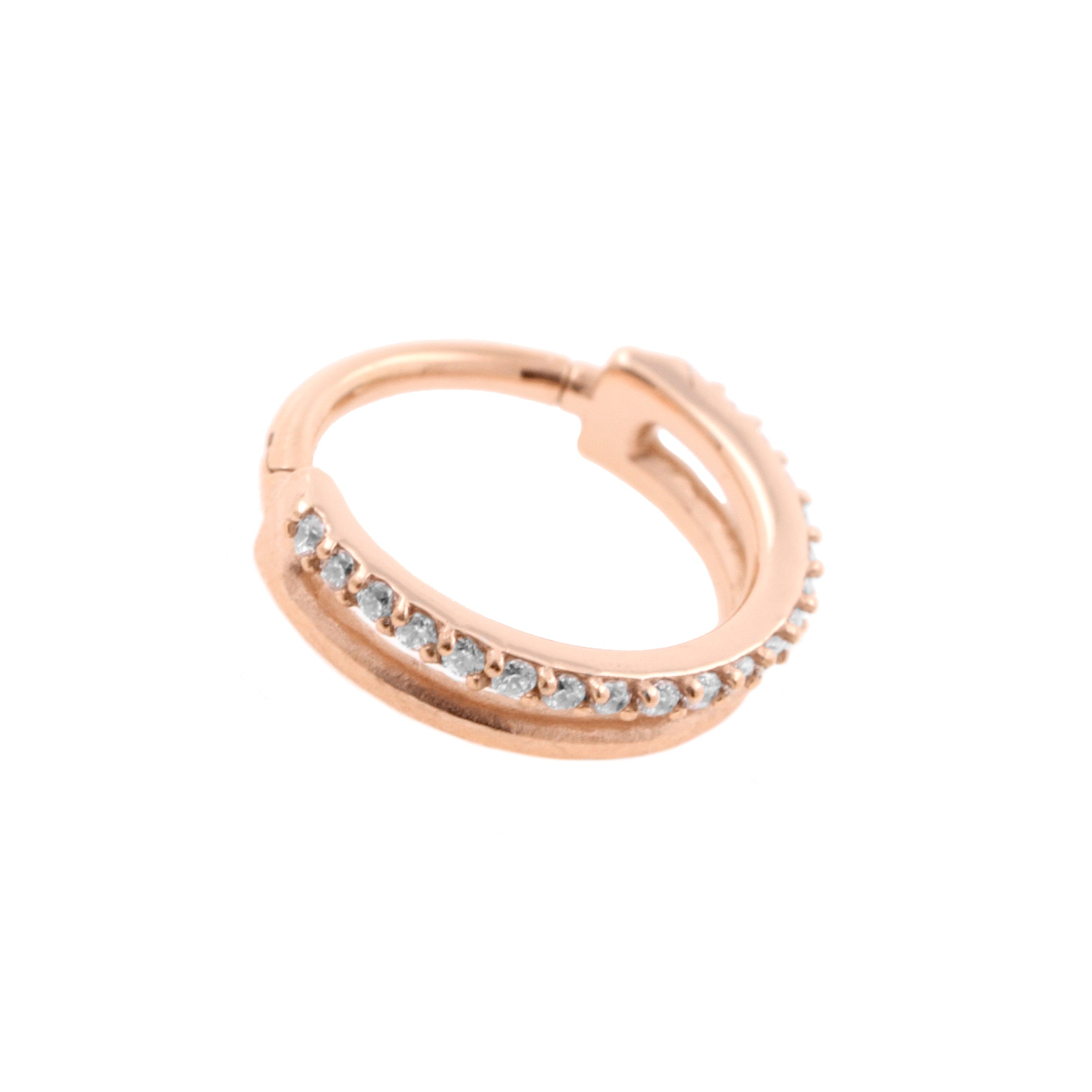 Klik, en het zit! Mooie Click Ring voor je piercings, gemaakt van chirurgisch staal en ingezet met premium zirkonia's. Makkelijk in en uit te doen en supercomfortabel. Het segmentje in deze ring zit vast aan de ring en de ring heeft aan een zijde een scharnier. Je klikt hem zo open, doet hem in je piercing en klikt hem weer dicht. Done! Deze click ringen zijn ideaal voor je helix piercings, maar kunnen ook in andere piercings gedragen worden.