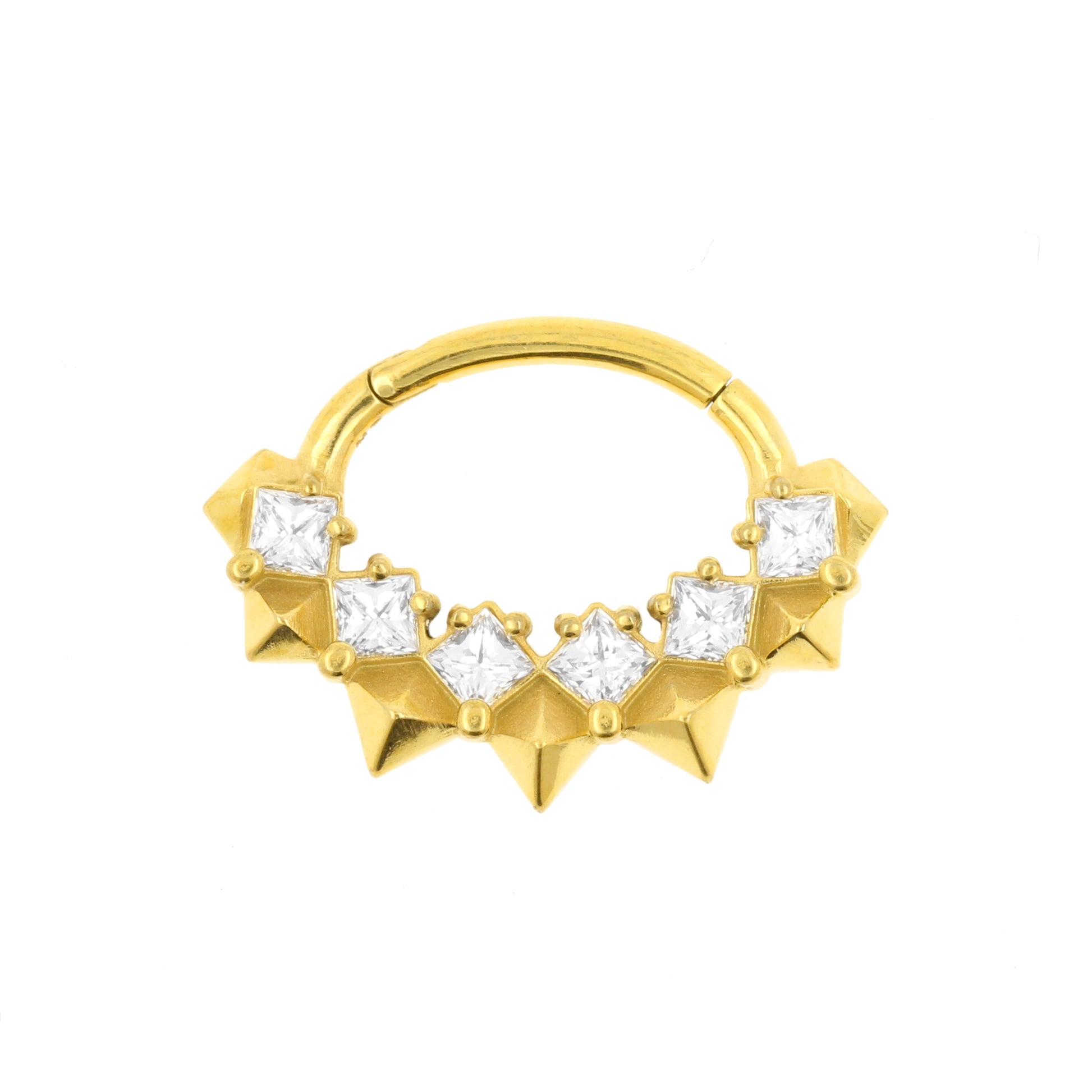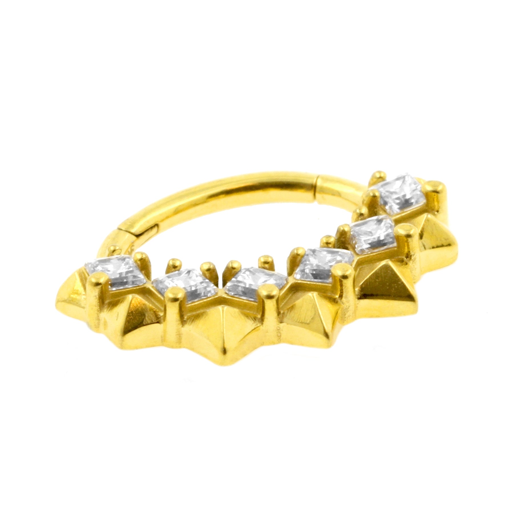 Nikkelvrij Stalen Daith Clicker - Zirkonia Square Studs Goud