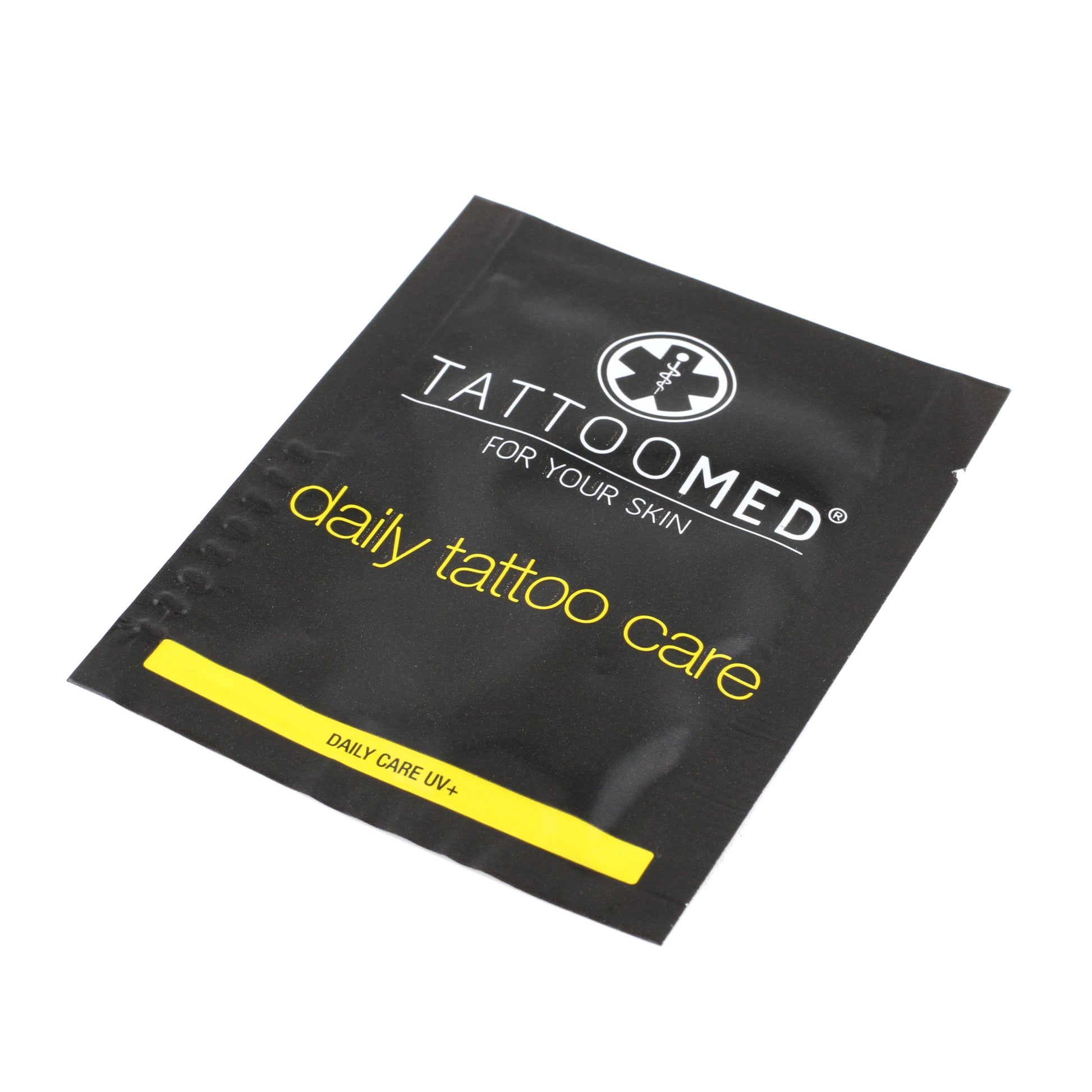 Vegan tattoo verzorging van TattooMed, nu ook in een handige meeneemverpakking! Deze verzorgende creme van TattooMed is ideaal voor de dagelijkste verzorging van je reeds genezen tattoo. De creme bevat diverse verzorgende ingredienten die je huid goed hydrateren en helpen om de kleuren van je tattoo langer mooi te houden. Daily Tattoo Care is voorzien van een lichte UV A en UV B zonbescherming en vrij van parabenen. De creme sluit de huid niet af, plakt niet en laat zich makkelijk uitsmeren. Verpakt in een handige sachet, ideaal voor op reis of om mee te nemen naar festivals. Niet getest op dieren!