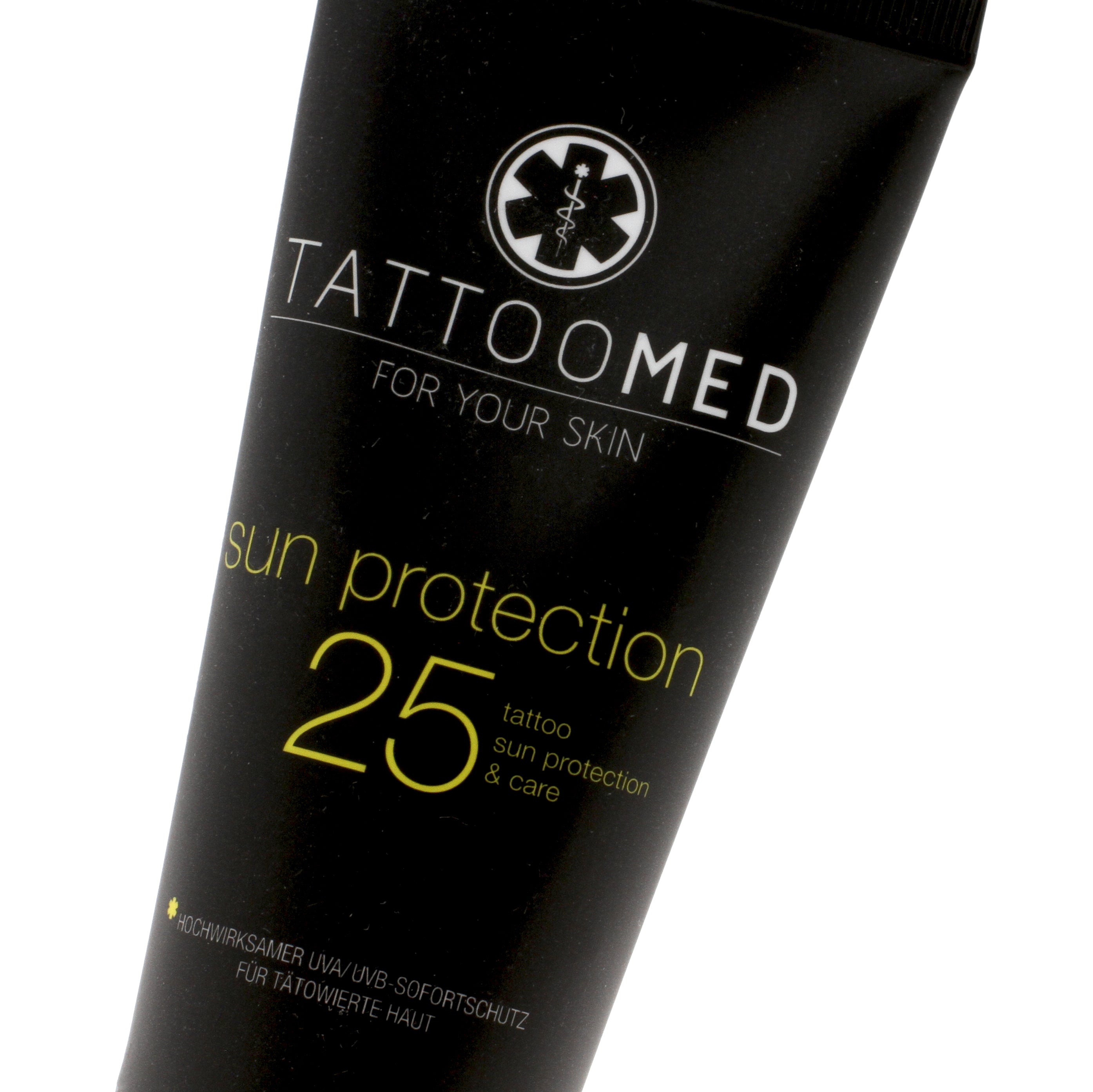 Vegan tattoo zonbescherming van TattooMed! Deze superfijne zonbescherming van TattooMed met SPF 25 is ideaal om je kwetsbare, getatoeëerde huid tegen schadelijk zonlicht te beschermen. De zonnecreme bevat diverse verzachtende ingredienten waaronder Panthenol en Vitamine E die je huid soepel en zacht houden. De zonnebrandcreme sluit de huid niet af, plakt niet en voelt niet vet aan. Vrij van parabenen en niet getest op dieren!