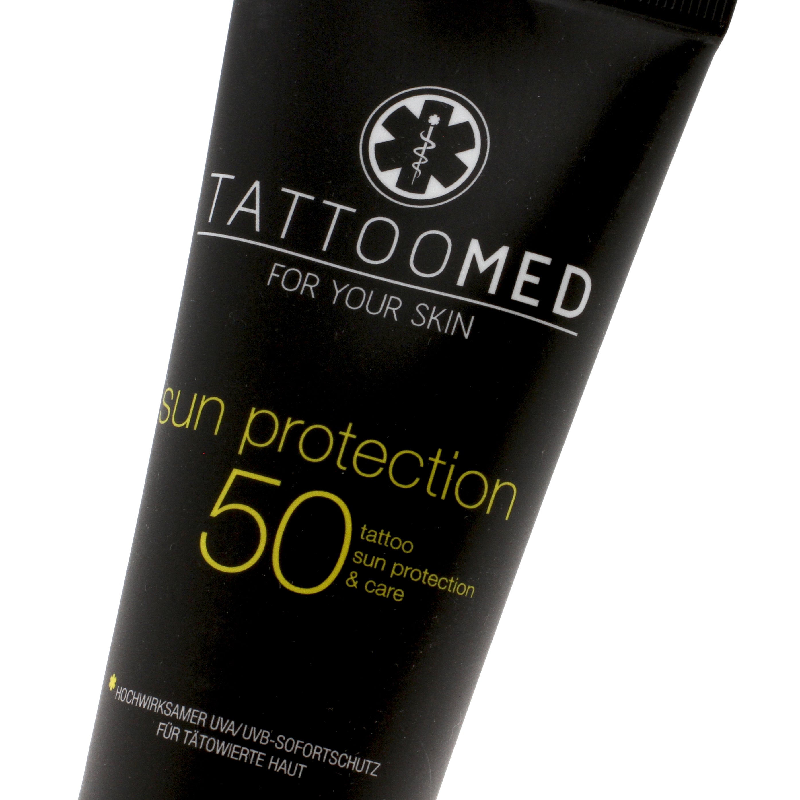 Vegan tattoo zonbescherming van TattooMed! Deze superfijne zonbescherming van TattooMed met SPF 50 is ideaal om je kwetsbare, getatoeëerde huid tegen schadelijk zonlicht te beschermen. De zonnecreme bevat diverse verzachtende ingredienten waaronder Panthenol en Vitamine E die je huid soepel en zacht houden. De zonnebrandcreme sluit de huid niet af, plakt niet en voelt niet vet aan. Vrij van parabenen en niet getest op dieren!