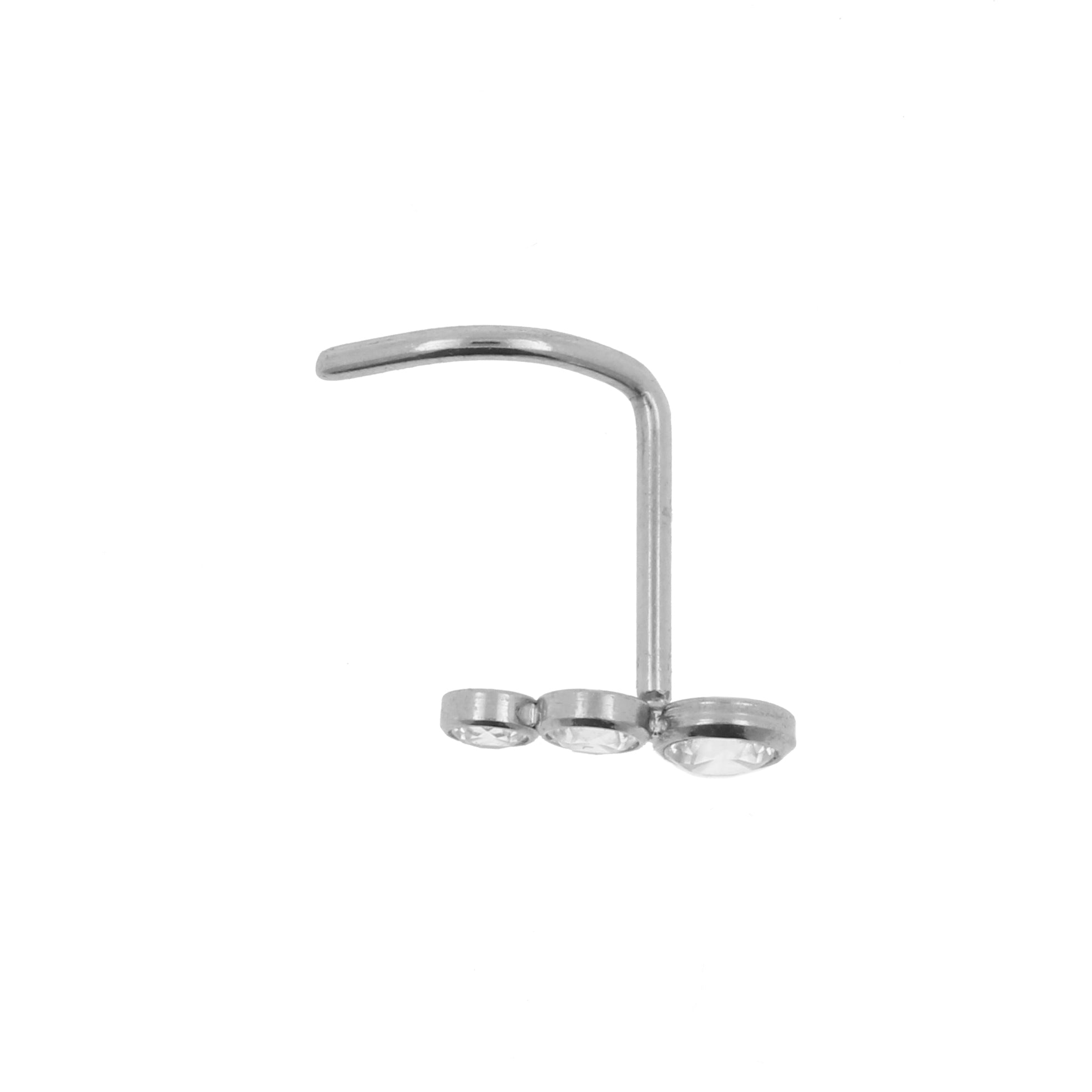 Speciaal voor je neuspiercings! Deze mooie neusstud is gemaakt van titanium en heeft een dikte van 0,8 mm. Aan de bovenzijde is deze nosestud voorzien van een prachtige cluster met premium zirkonia wat je neuspiercing een mooie look geeft. Het staafje van de nosestud is rond gebogen zodat het sieraad goed op zijn plek blijft zitten. Hoogglanzend gepolijst voor optimaal draagcomfort en perfect voor je gepiercete neusvleugel!
