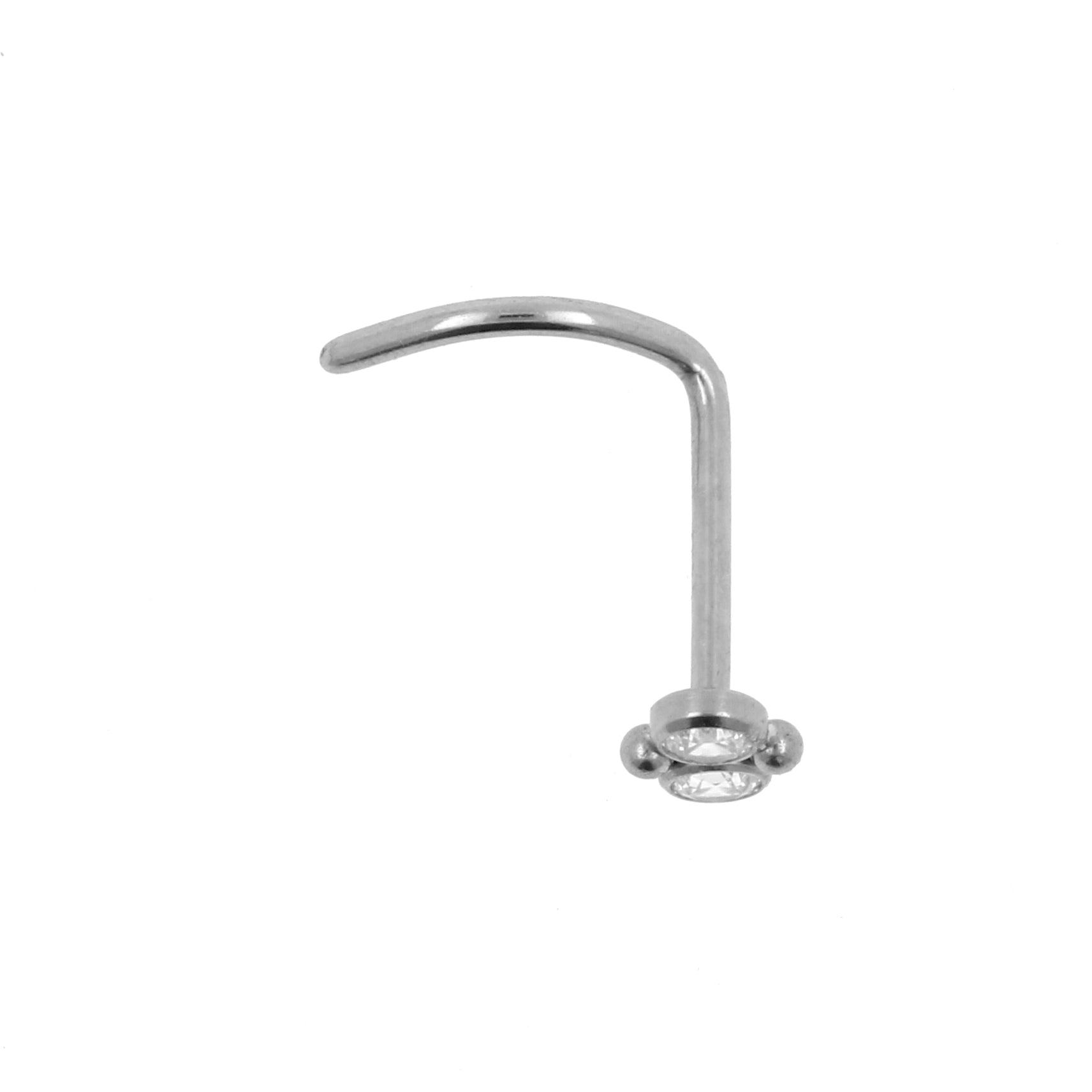 Speciaal voor je neuspiercings! Deze mooie neusstud is gemaakt van titanium en heeft een dikte van 0,8 mm. Aan de bovenzijde is deze nosestud voorzien van een prachtige cluster met premium zirkonia wat je neuspiercing een mooie look geeft. Het staafje van de nosestud is rond gebogen zodat het sieraad goed op zijn plek blijft zitten. Hoogglanzend gepolijst voor optimaal draagcomfort en perfect voor je gepiercete neusvleugel!