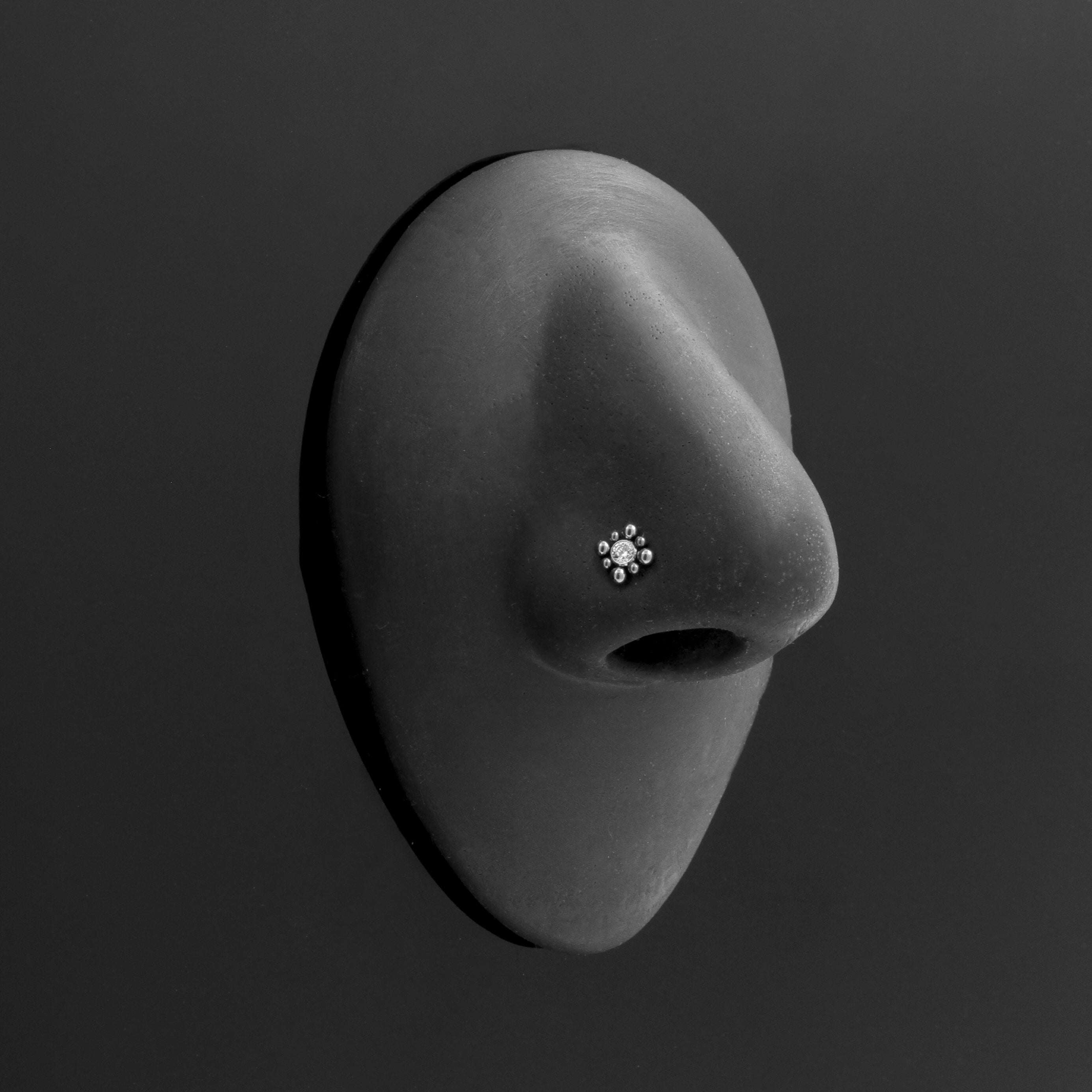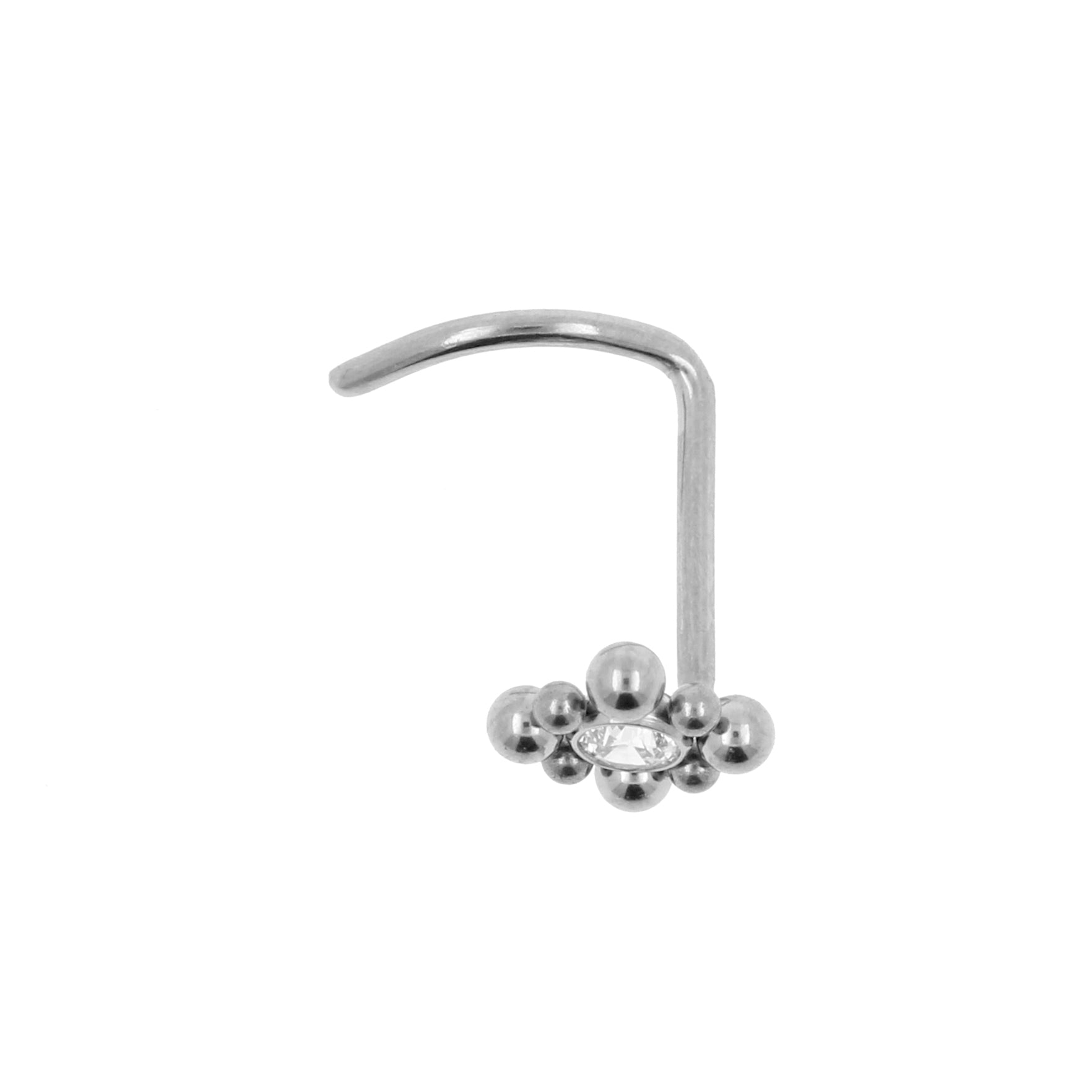 Speciaal voor je neuspiercings! Deze mooie neusstud is gemaakt van titanium en heeft een dikte van 0,8 mm. Aan de bovenzijde is deze nosestud voorzien van een prachtige cluster met premium zirkonia wat je neuspiercing een mooie look geeft. Het staafje van de nosestud is rond gebogen zodat het sieraad goed op zijn plek blijft zitten. Hoogglanzend gepolijst voor optimaal draagcomfort en perfect voor je gepiercete neusvleugel!