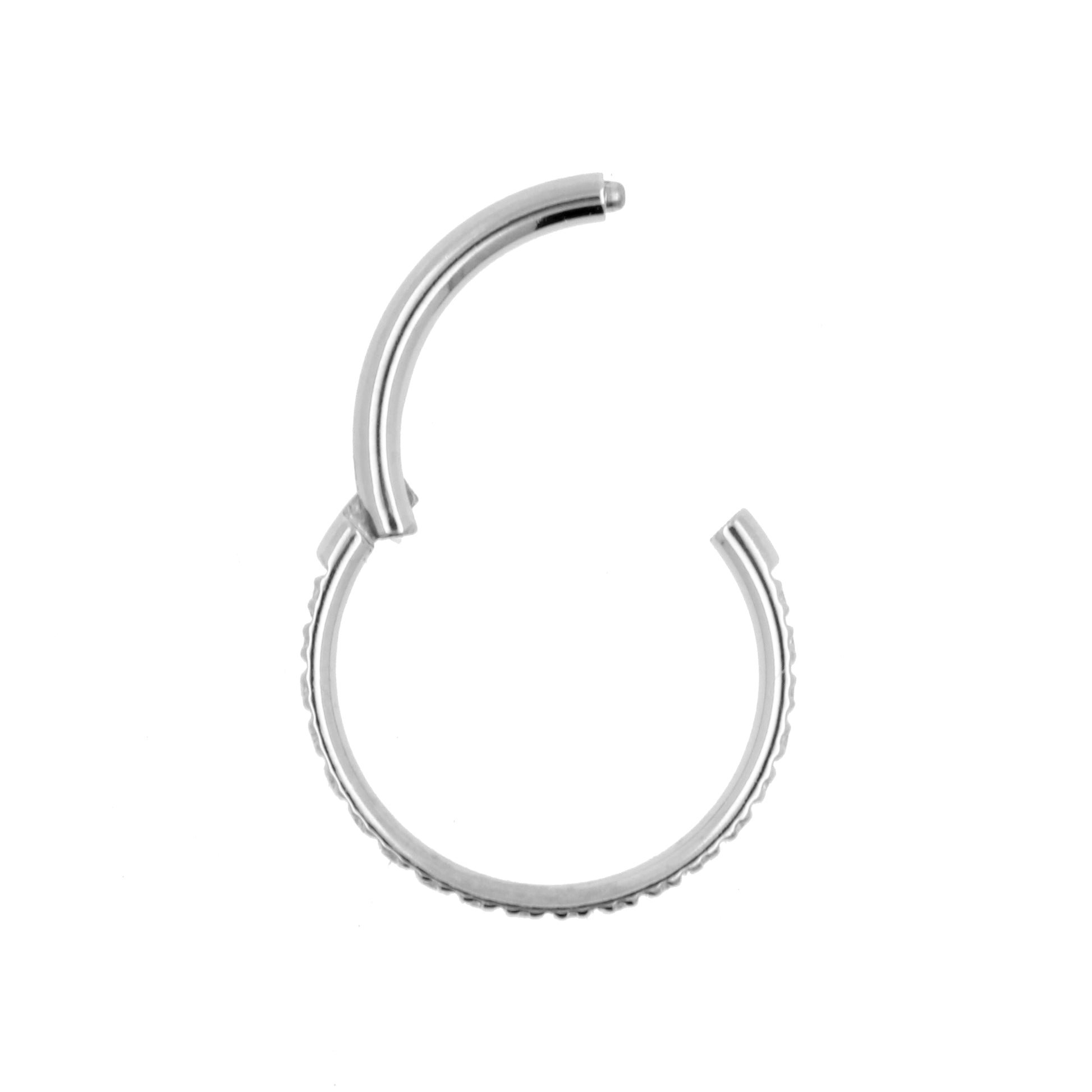 Ben je op zoek naar de allerbeste piercingsieraden van titanium? Dan is deze click ring van Devilheart voor jou bedoeld! Deze high-end piercingsieraden zijn gemaakt van de beste kwaliteit materialen en zijn tot in perfectie afgewerkt. Deze mooie click ring is gemaakt van titanium en ingezet met schitterende zirkonia's. Elke click ring is prachtig versierd en maakt absoluut iets unieks van je piercing. Het sieraad klik je eenvoudig open en dicht. De click ringen zijn verkrijgbaar in diverse diameters zodat je ze perfect kan laten aansluiten op je piercing. Een echte must have voor je sieradencollectie!