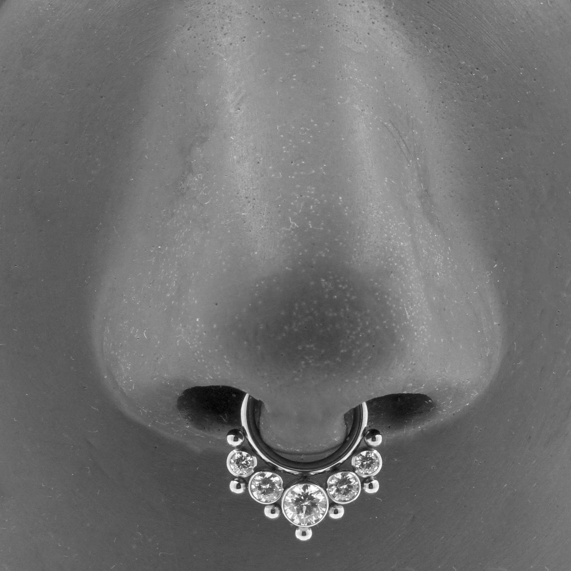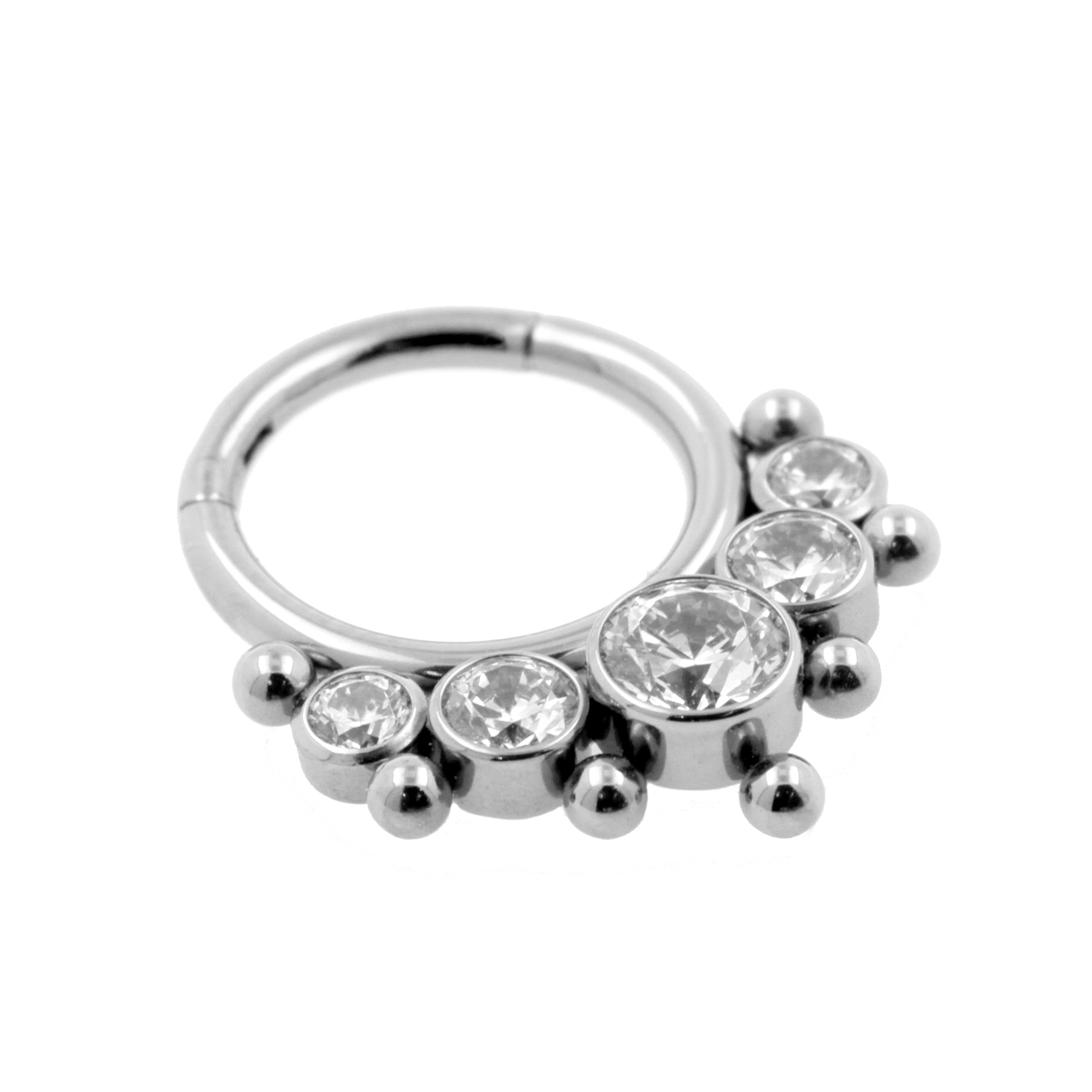 Ben je op zoek naar de allerbeste piercingsieraden van titanium? Dan is deze click ring van Devilheart voor jou bedoeld! Deze high-end piercingsieraden zijn gemaakt van de beste kwaliteit materialen en zijn tot in perfectie afgewerkt. Deze mooie click ring is gemaakt van titanium en ingezet met zirkonia's. Elke click ring is prachtig versierd en maakt absoluut iets unieks van je piercing. Het sieraad klik je eenvoudig open en dicht. De click ringen zijn verkrijgbaar in diverse diameters zodat je ze perfect kan laten aansluiten op je piercing. Een echte must have voor je sieradencollectie!