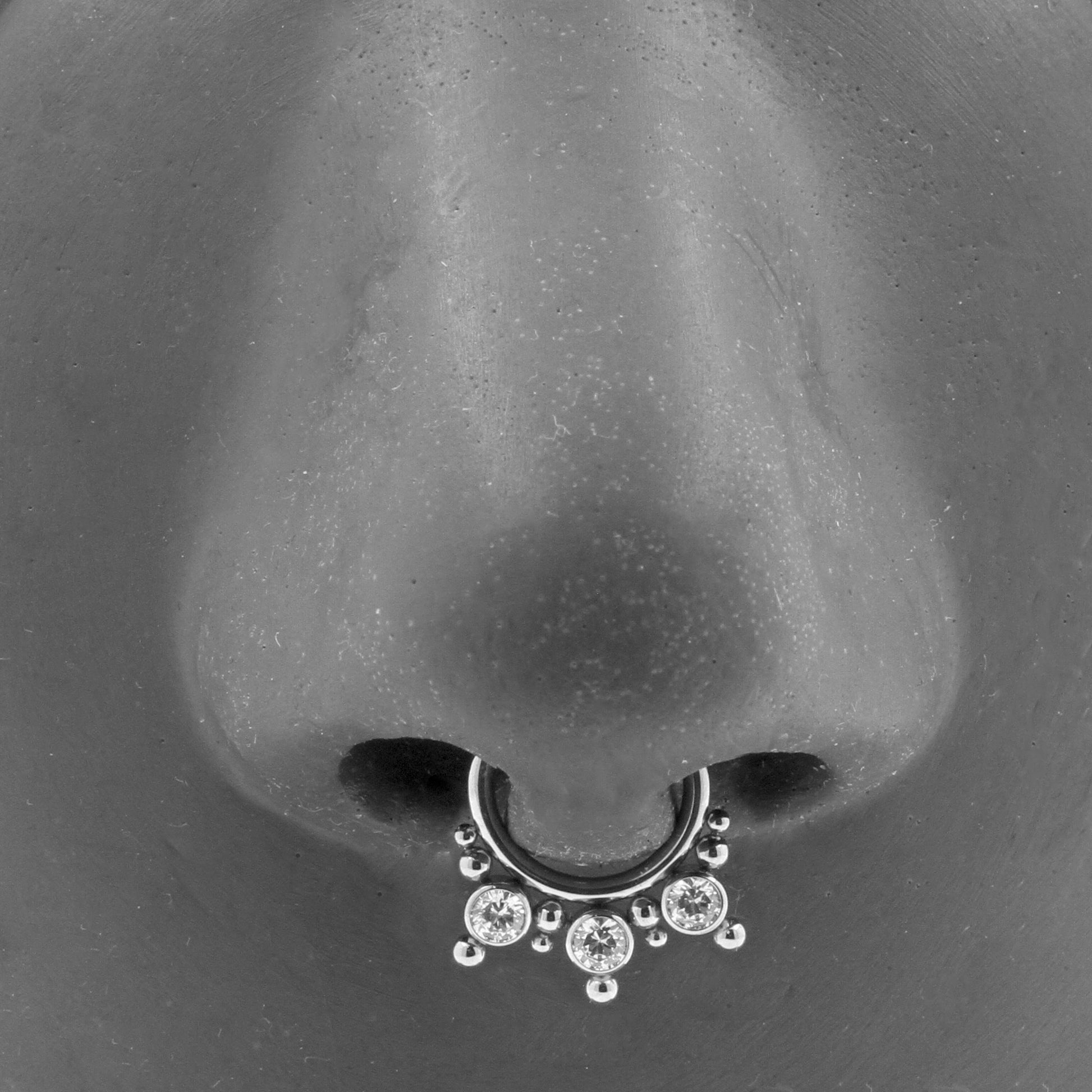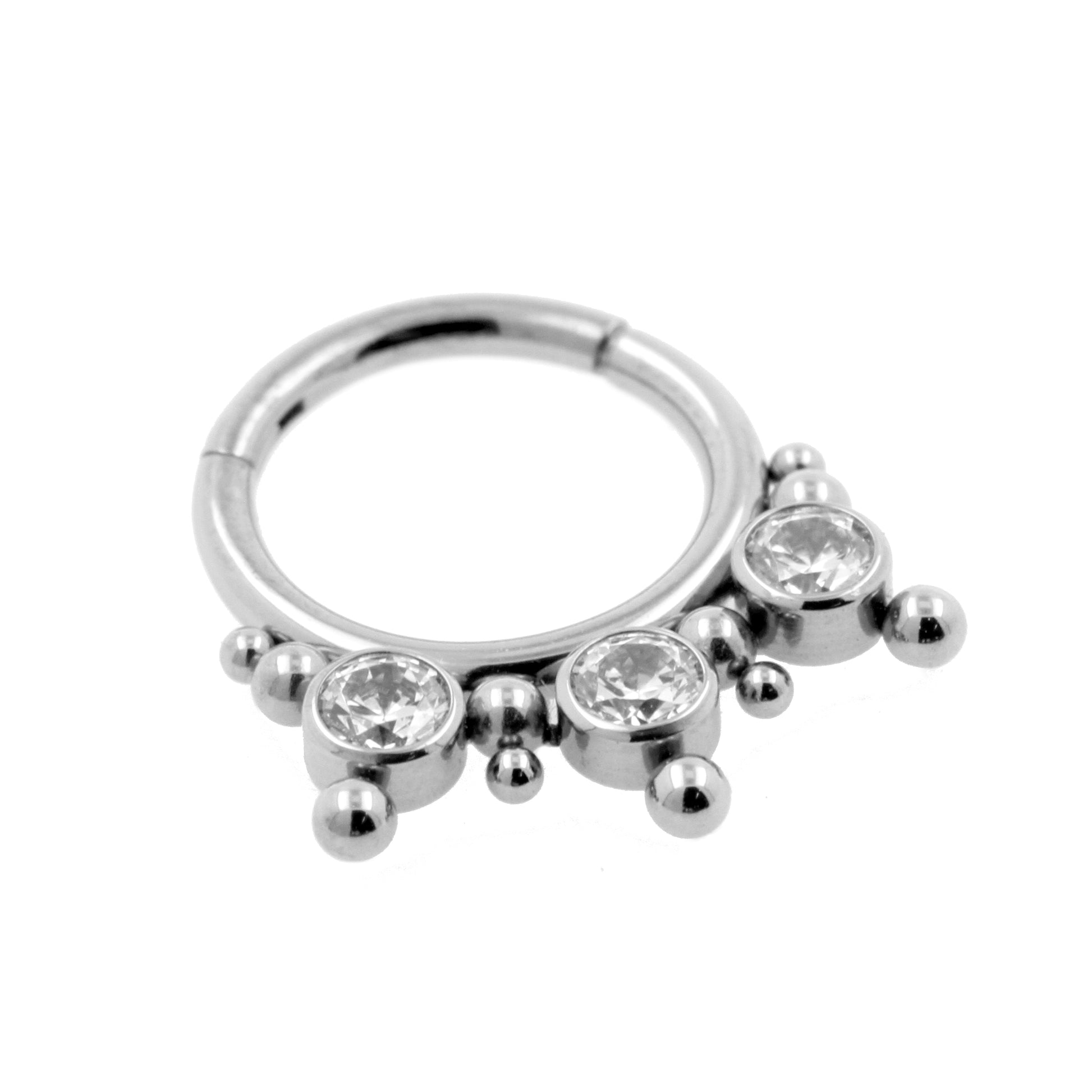 Ben je op zoek naar de allerbeste piercingsieraden van titanium? Dan is deze click ring van Devilheart voor jou bedoeld! Deze high-end piercingsieraden zijn gemaakt van de beste kwaliteit materialen en zijn tot in perfectie afgewerkt. Deze mooie click ring is gemaakt van titanium en ingezet met zirkonia's. Elke click ring is prachtig versierd en maakt absoluut iets unieks van je piercing. Het sieraad klik je eenvoudig open en dicht. De click ringen zijn verkrijgbaar in diverse diameters zodat je ze perfect kan laten aansluiten op je piercing. Een echte must have voor je sieradencollectie!